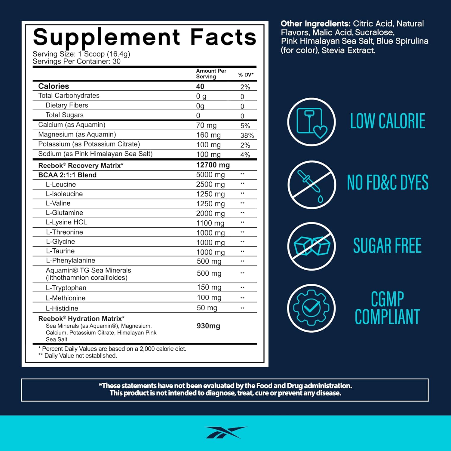 Scientifically Formulated for Faster Recovery: With Reebok’s performance-driven legacy, we’ve spent decades understanding what athletes need. Enter [REE]COVER. Speed up muscle recovery and support your joints with a powerhouse blend of amino acids that helps reduce soreness and fatigue. With [REE]COVER, you’ll be ready to attack your next workout harder and faster. Plus, our formula is clean and made to the highest standards, Informed Sport Certified, with zero sugar, and no artificial dyes.