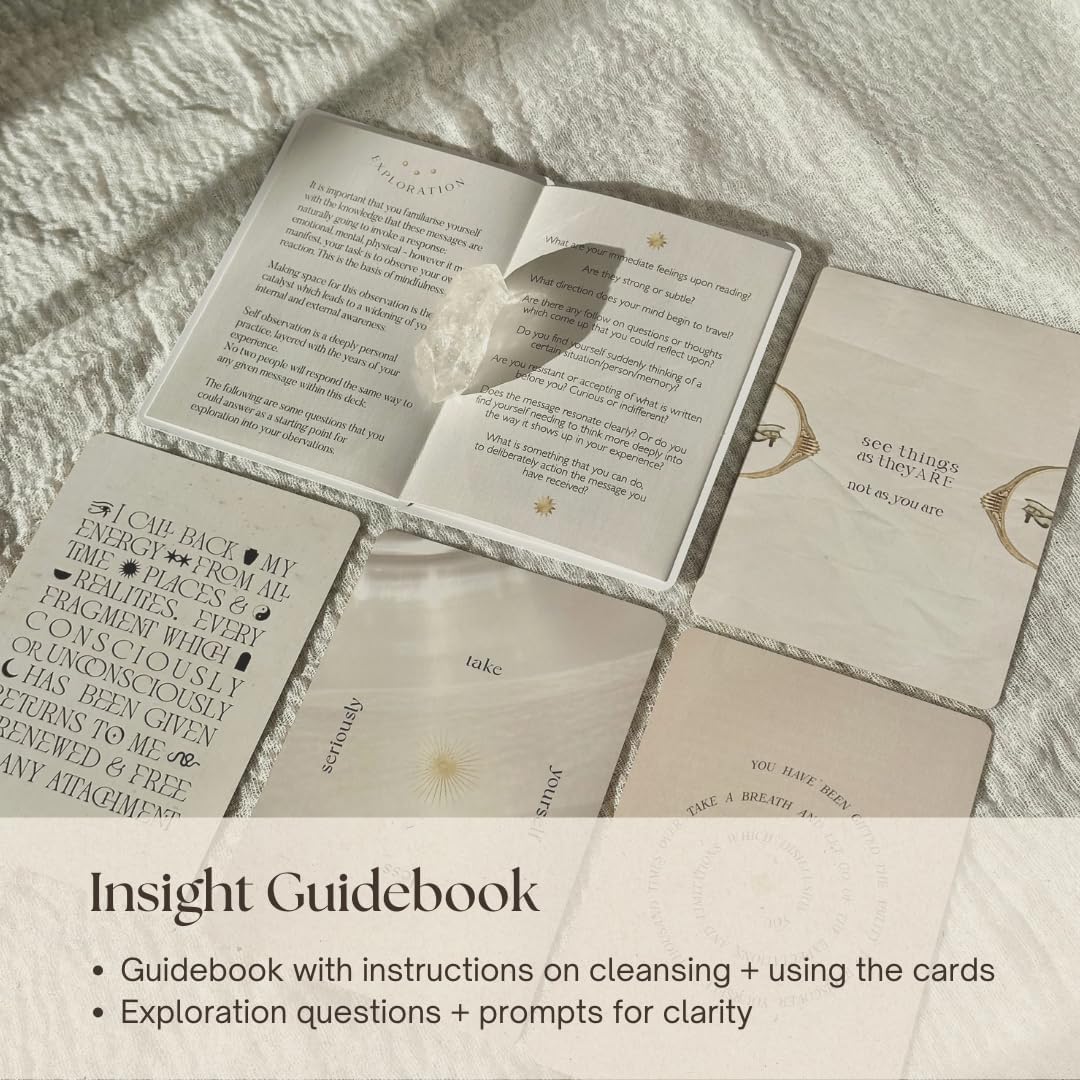 A VERSATILE TOOL FOR MINDFULNESS – Designed to complement your mindfulness journey, our cards are perfect for taking a quick mindfulness break. Serving as inspiration cards and daily inspiration cards, their understated tones and natural textures, inspired by cosmic and ancient realms, make them a thoughtful addition to your rituals. Whether used alone or paired with oracle or tarot decks, they offer a unique way to uncover deeper insights and fresh perspectives.