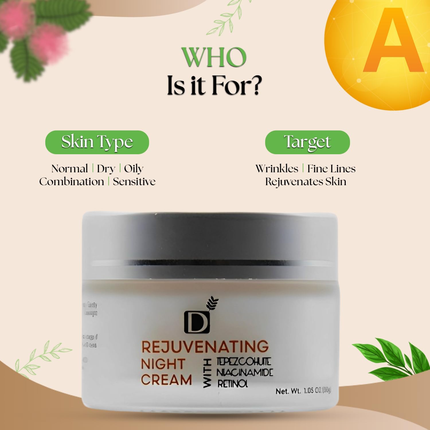 Rejuvenate your skin overnight with our advanced Retinol formula, infused with soothing Menthol, Tepezcohuite Extract, and Niacinamide for a refreshed, radiant complexion.
