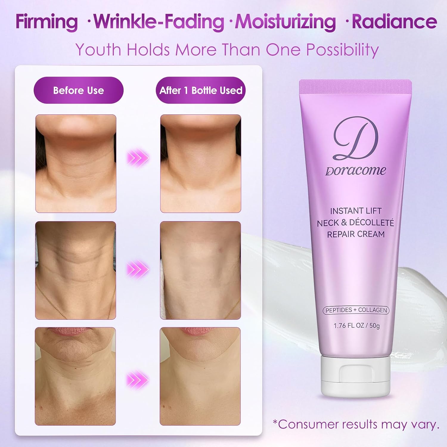 Day & Night Firming Moisturizer — Lightweight yet deeply hydrating, this firming cream absorbs quickly without greasiness, making it ideal for both morning and evening routines to maintain a plump, refreshed look.