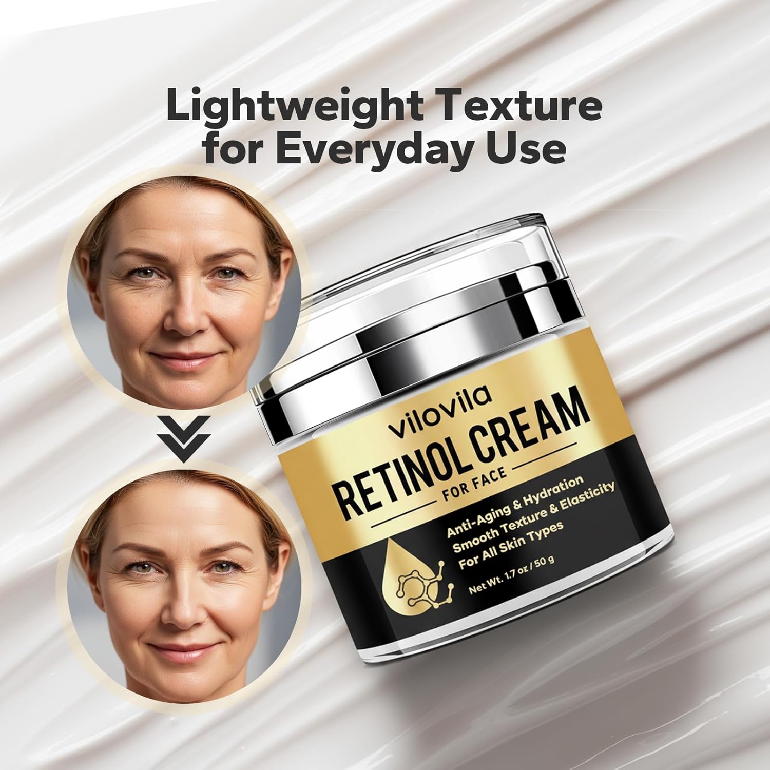 Lightweight Texture for Everyday Use: Designed with a non-greasy, fast-absorbing formula, this Retinol Cream is comfortable for daily use and works well for different skin types. Unlike heavy creams, it allows the skin to feel breathable while still delivering the hydration it needs. The smooth texture makes it easy to layer with other skincare products, ensuring flexibility in any routine.