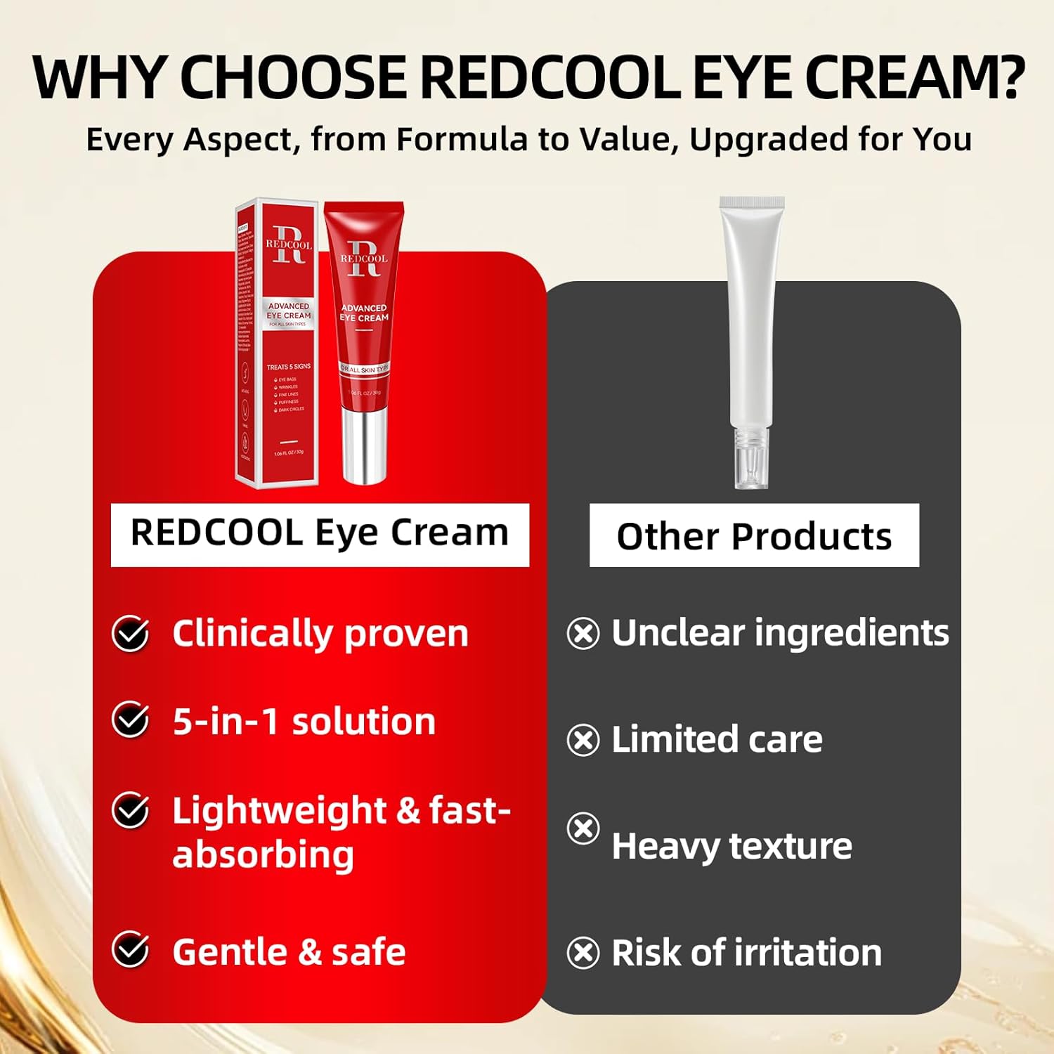 Redcool Retinol Eye Cream with Peptides – Anti-Aging Under Eye Cream to Reduce the Appearance of Fine Lines, Wrinkles, Puffiness & Dark Circles, Daily Hydrating Eye Care