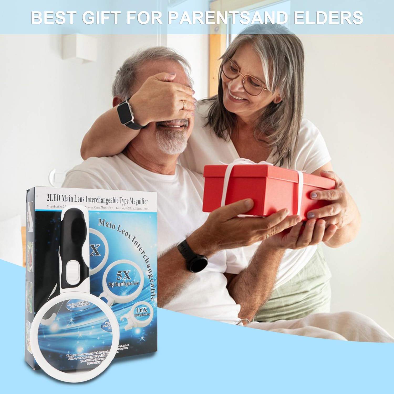 【3 Interchangeable Lens Magnifiers】 Magnifier with light has three interchangeable lenses with 2.5X, 5X, 16X magnification, you can change the lenses at will to suit different purposes.