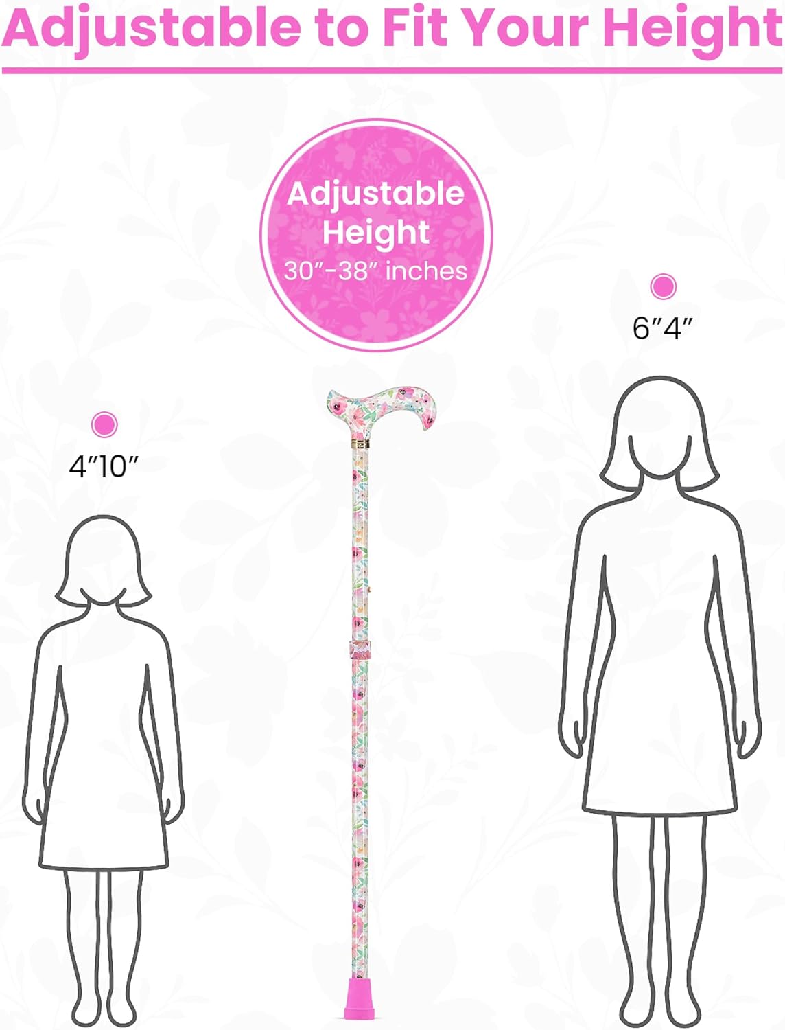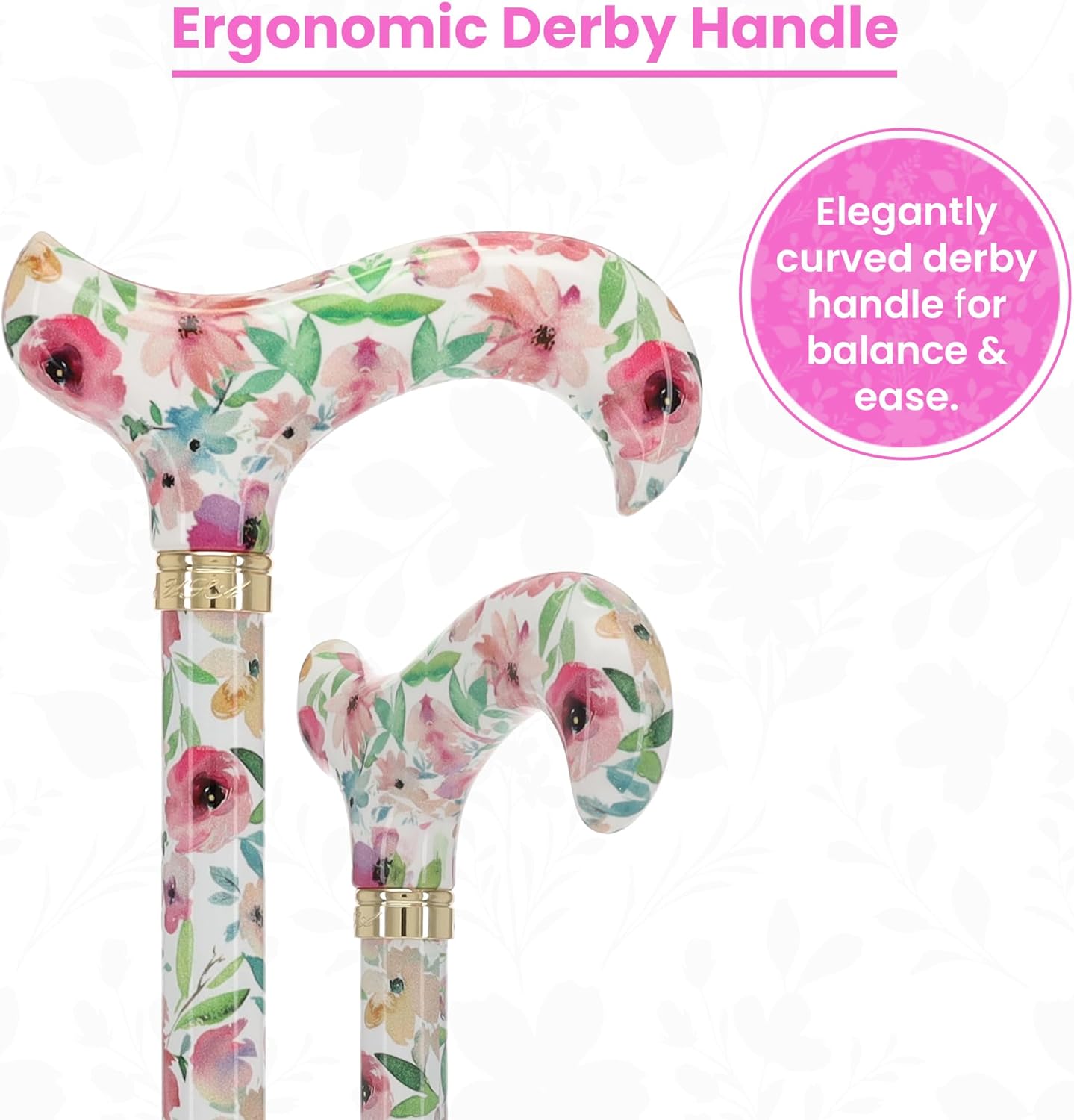 These lightweight high-quality aluminum and adjustable canes can easily be adjusted to fit a wide range of user’s height. They have matching and repeating patterns on the handle and shaft to give a true stylish and fashionable appearance. The derby style handle is elegantly shaped with a nice curve to provide a comfortable grip and great support to give the user more confidence when walking.