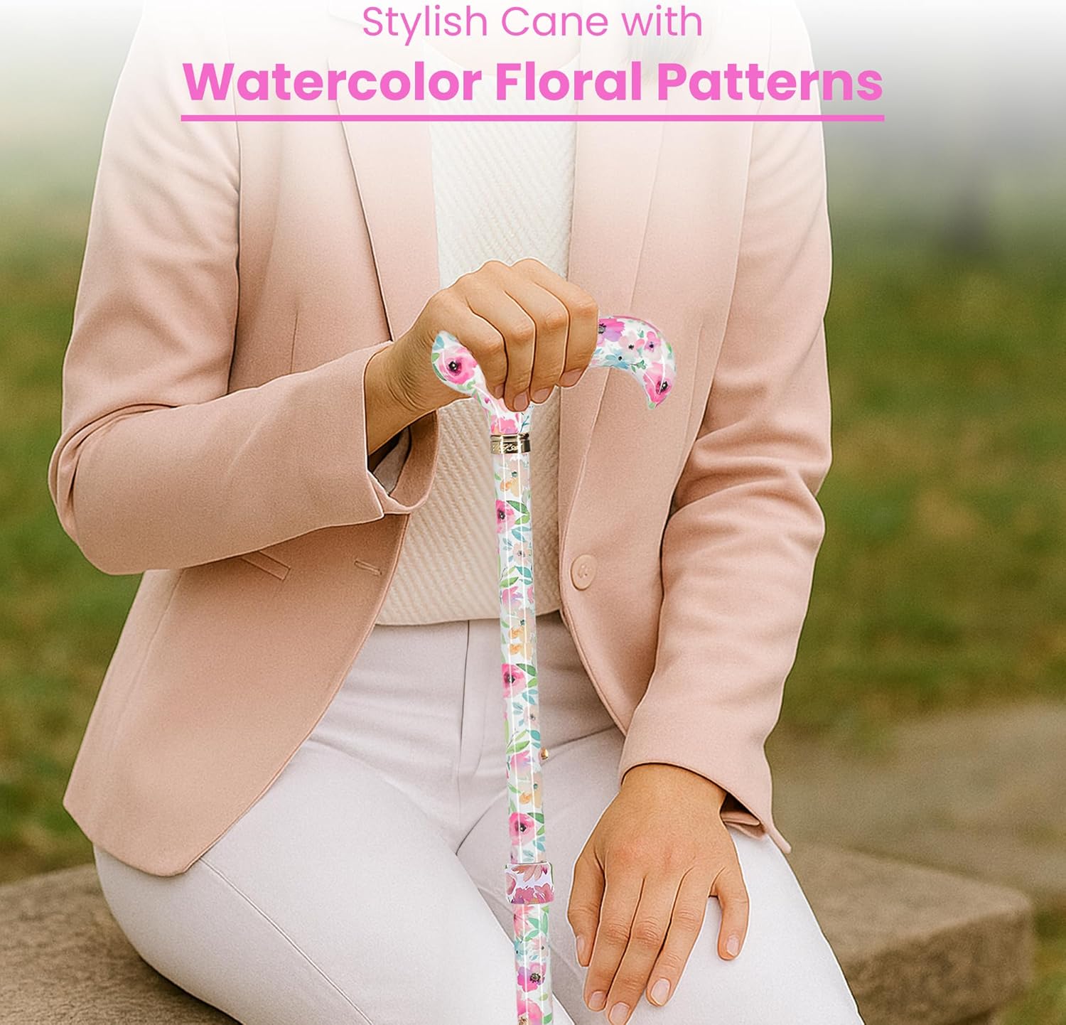 There are exotic floral designs to fashionable purple paisley designs to match your favorite outfit. The hand painted watercolor painting designs were custom painted by Elizabeth Carroll to truly give a feeling of artwork in each design. Many cane users that get these unique designs end up collecting many different patterns to have a unique design for different days of the week.