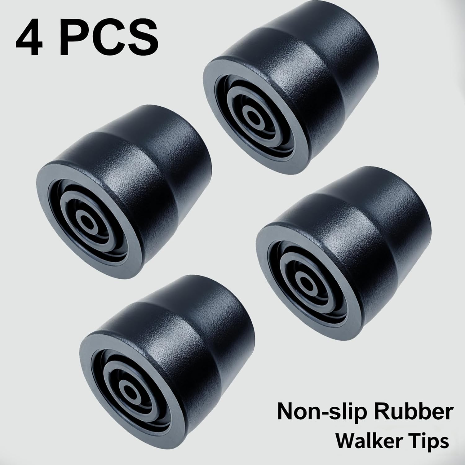 Rubber 4 pcs Walker Tips 1 1/8” Heavy Duty, Replacement Tips for Walkers, Commodes, Shower Chairs, Walking Sticks, Canes Legs, Cane Tips