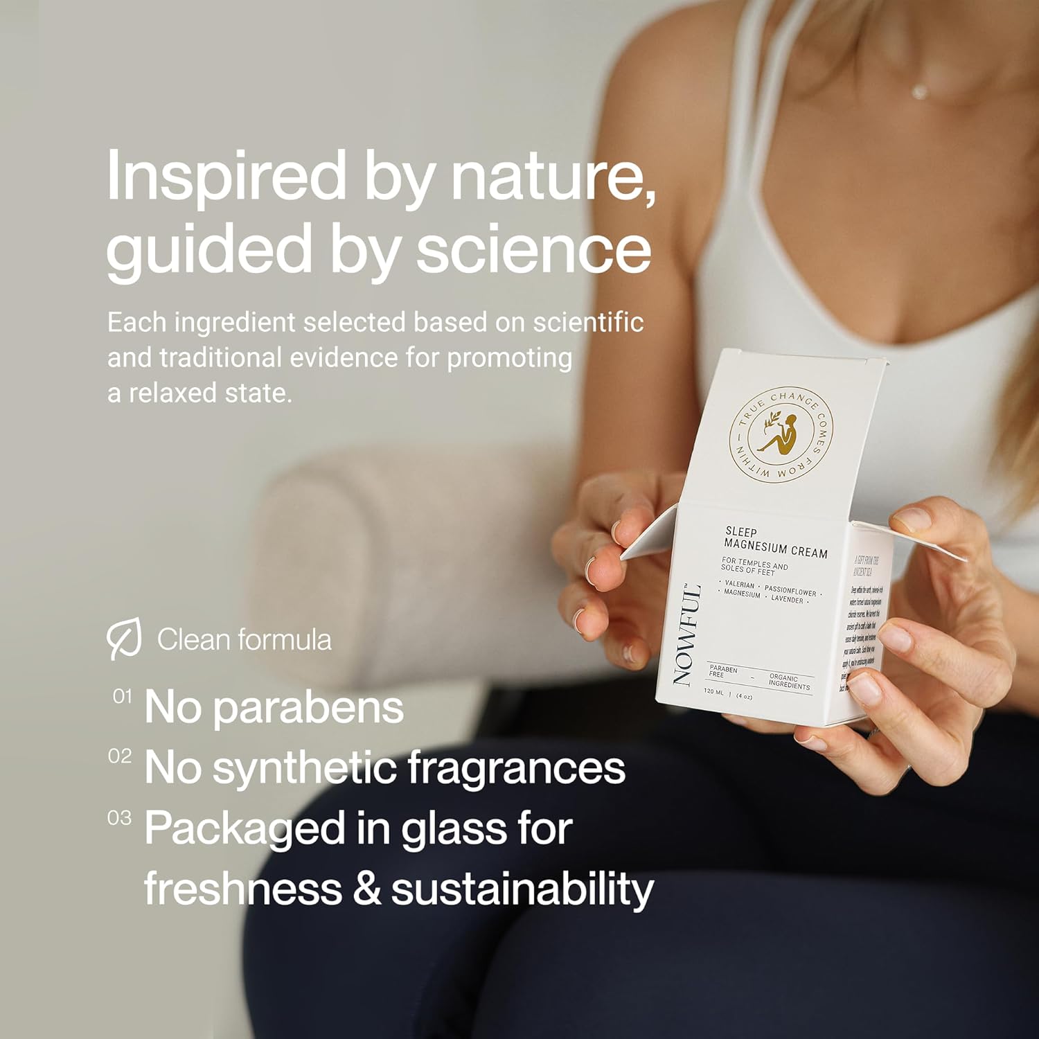 The Restorative Sleep Ritual: Let your night begin with intention. Our unique Magnesium Cream is an advanced natural sleep aid crafted with ingredients backed by science to gently guide you toward peace and deep sleep. Use this topical solution as a bedtime ritual to quiet the mind, ease nervous tension, and ensure you wake up feeling with presence, clarity, and strength.