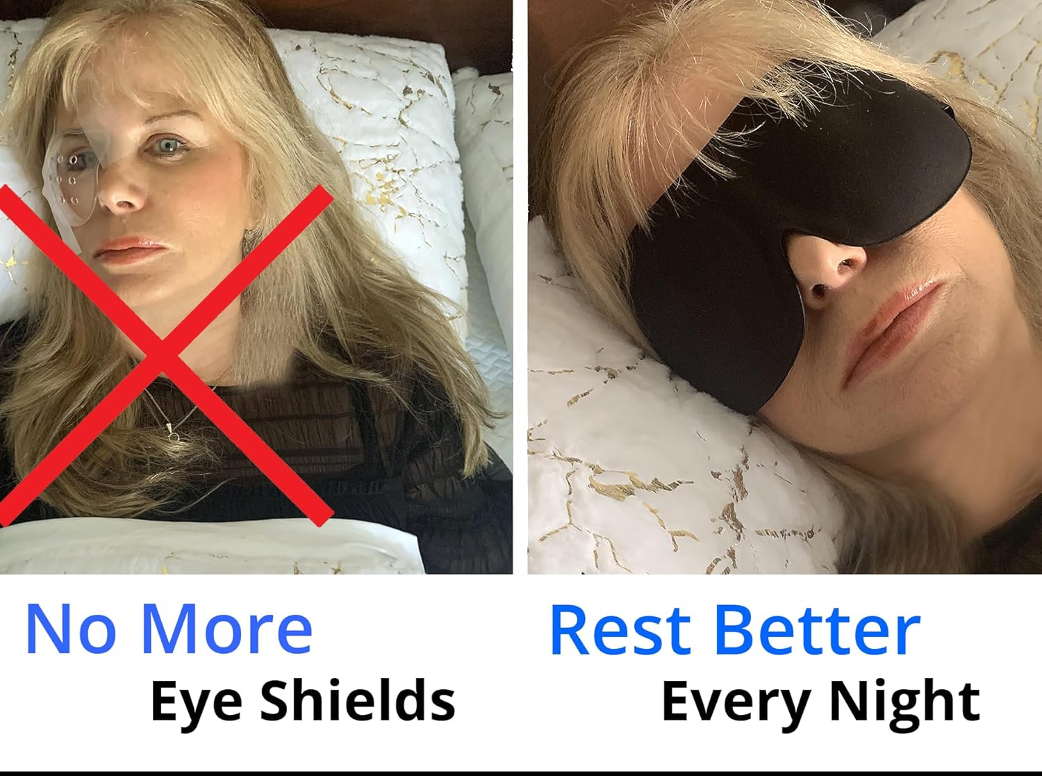ENDORSED BY DOCTOR – Recommended by Gary F. Jaffe, M.D., Board-Certified Ophthalmologist, for post-surgery comfort and protection TWO SHIELDS INCLUDED – Comes with a pair of medical-grade eye shields; no repurchase needed when your second eye is treated PRESSURE-FREE PROTECTION – Shields lift fabric off eyelids to prevent rubbing and ease strain without excess pressure TOTAL BLACKOUT COMFORT – 3-D contoured mask plus adjustable strap blocks all light; lightweight, breathable fabric stays cool all night HEAL BETTER, FEEL BETTER– Deeper, uninterrupted sleep speeds recovery, reduces discomfort, and boosts overall mood