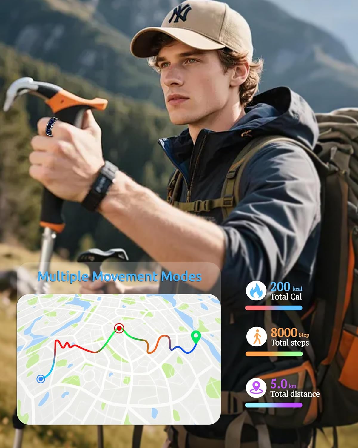 【 Multiple Sport Modes & Fitness Tracking】 Automatically track daily steps, distance, and active minutes. Capture precise data for each activity to better achieve your fitness goals. Perfect as a fitness ring for both men and women.