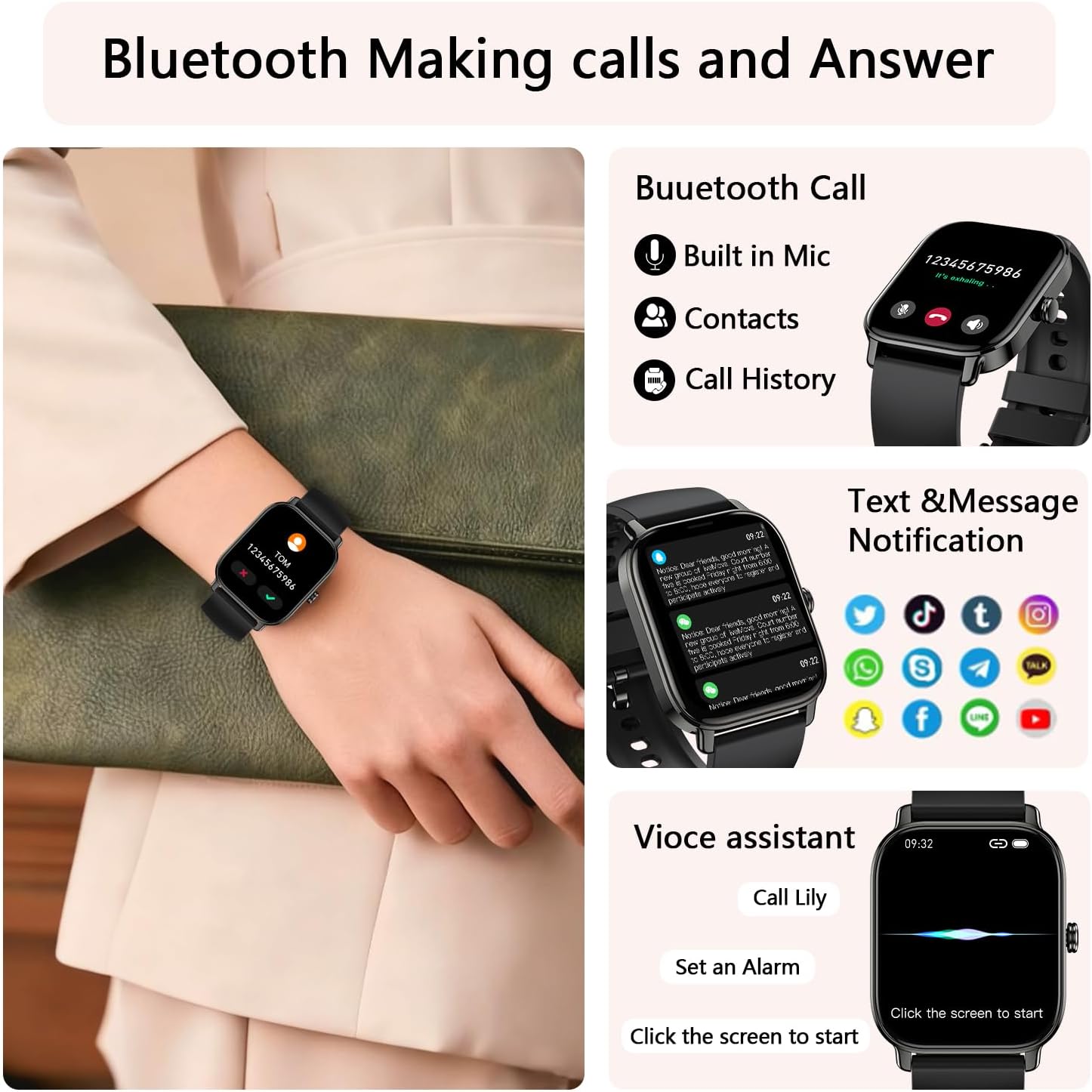 Bluetooth Calling & Smart Notification: Digital watch men women feature a built-in microphone and HD speaker, allowing you to make/receive/reject calls, synchronize contacts, and save call history. The womens watches also supports message notifications (Facebook, Instagram, WhatsApp, Twitter, etc).smart watch with text and call can support most android and iOS phone(andriod 5.0 and above iOS 9.0 and above).Such as mens watch compatible with iPhone, Samsung, HUAWEI,etc