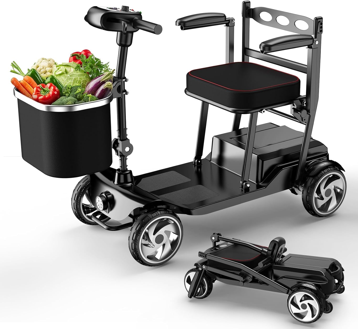 Lightweight Folding Mobility Scooter – Weighing only 40.8 pounds without the battery, So Lite easy to transport padded mobility chair folds down for easy storage in your car or home