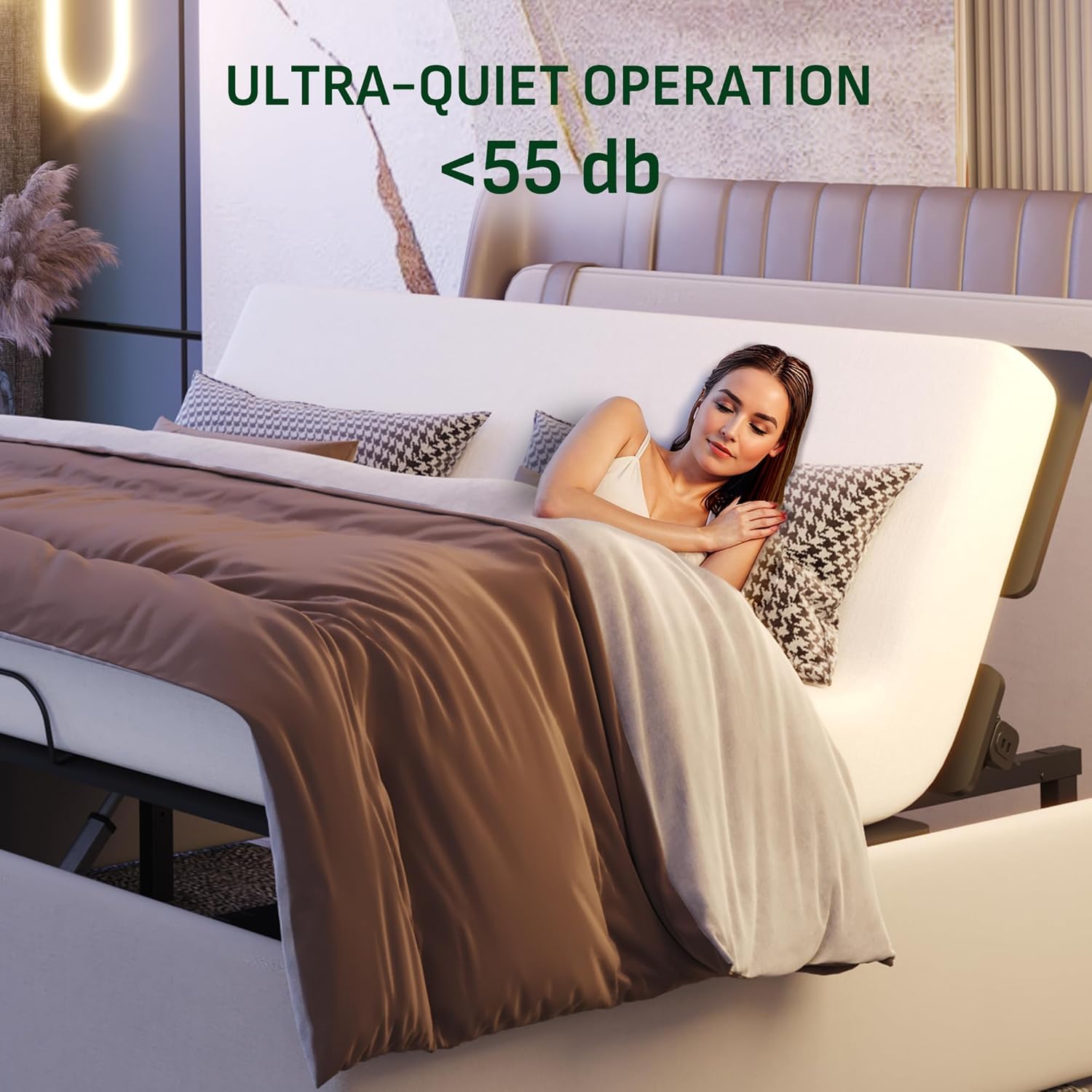 【Independent Head and Foot Incline】 – Customize your comfort with independent head (0–60°) and foot (0–40°) adjustment. Whether you’re reading, watching TV, or simply unwinding after a long day, you can easily find your favorite position. The Oxford fabric bedspread adds a touch of softness, making your evenings more relaxing and your mornings more refreshed.