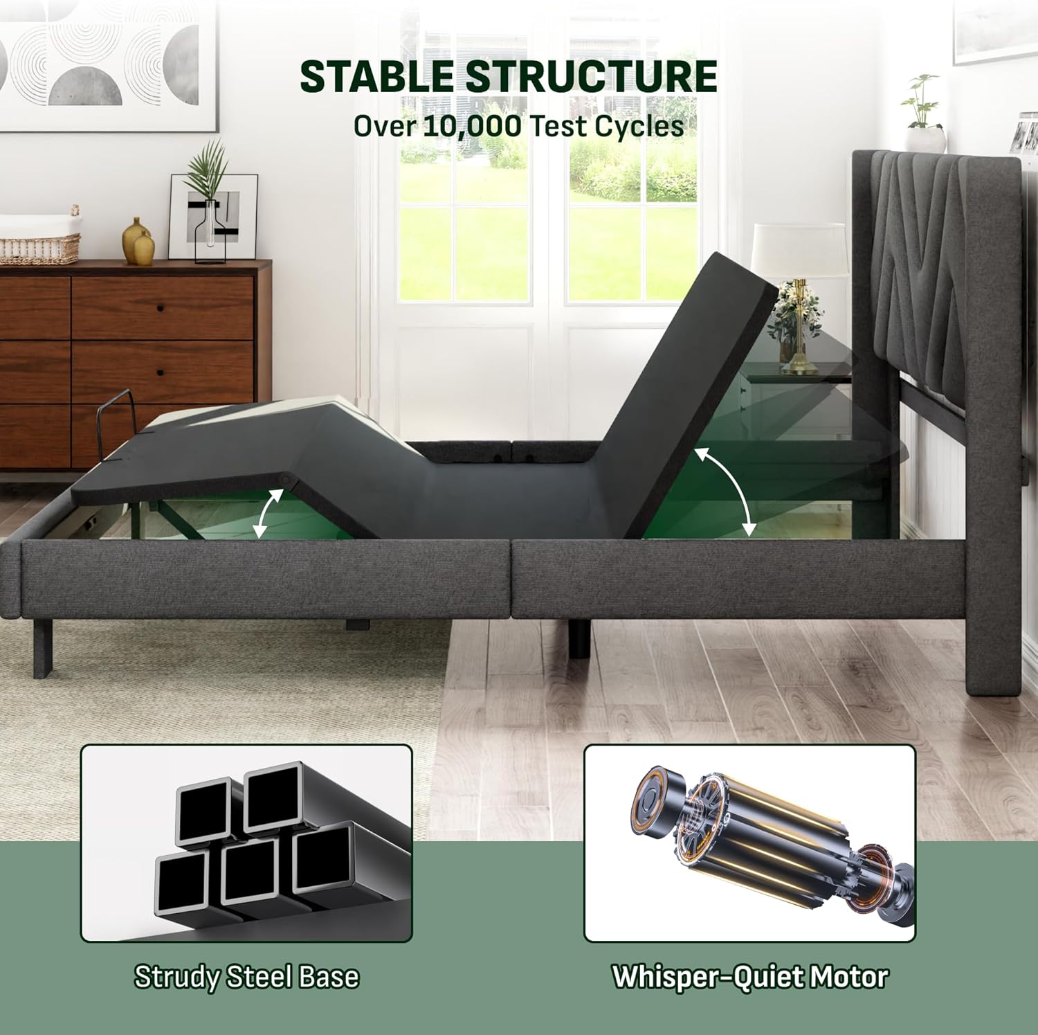 【Heavy-Duty Frame & Long Warranty】- Tested for 10,000+ lift cycles, the reinforced steel structure supports up to 600 lbs and remains stable, quiet, and reliable over years of use—all backed by a 10-year frame warranty for long-term peace of mind.