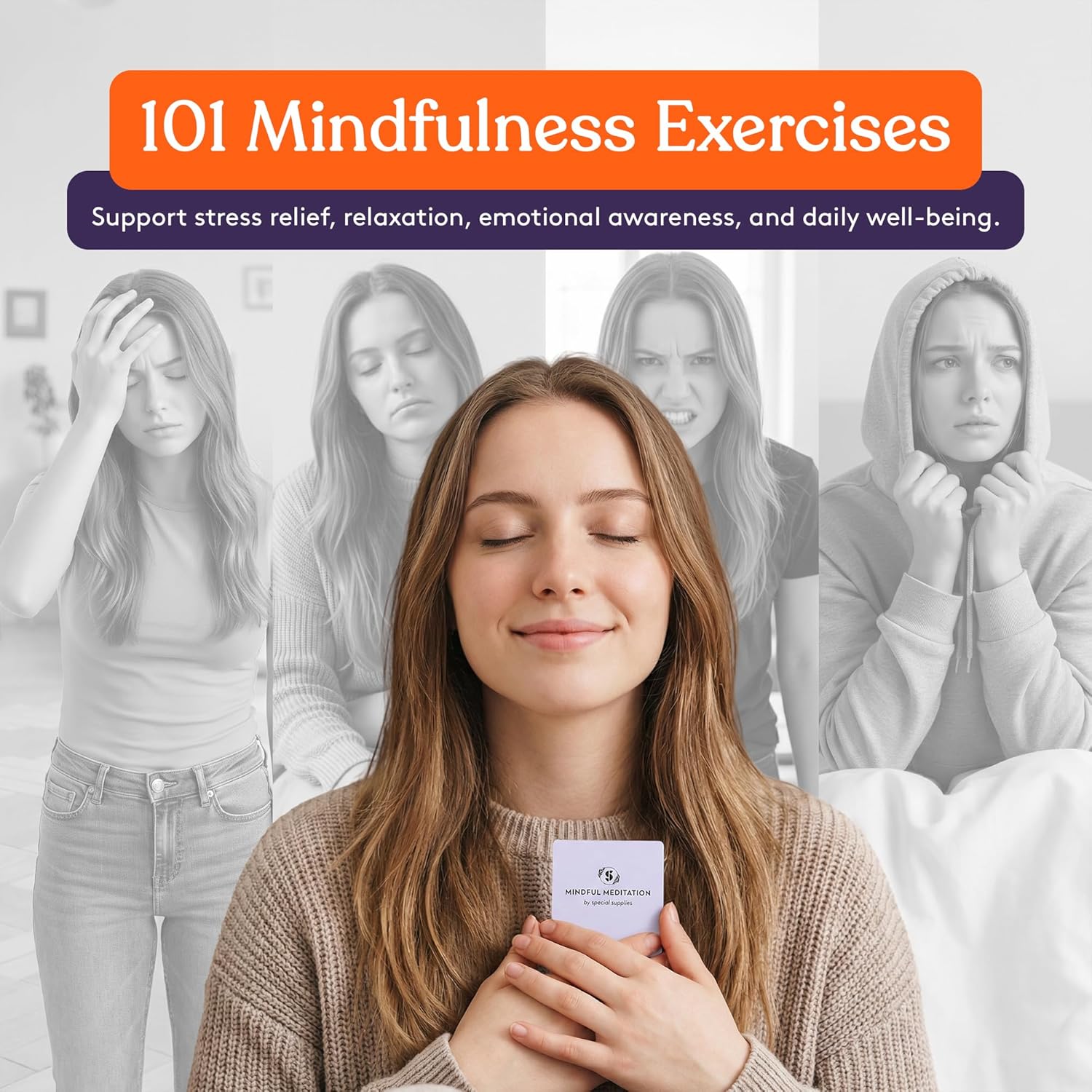 101 Mindfulness Exercises – A versatile deck of 101 beautiful cards designed to support stress relief, anxiety management, relaxation, self-care, emotional awareness, and overall mental wellness. Create your own mindfulness routine with ease and watch your life transform.