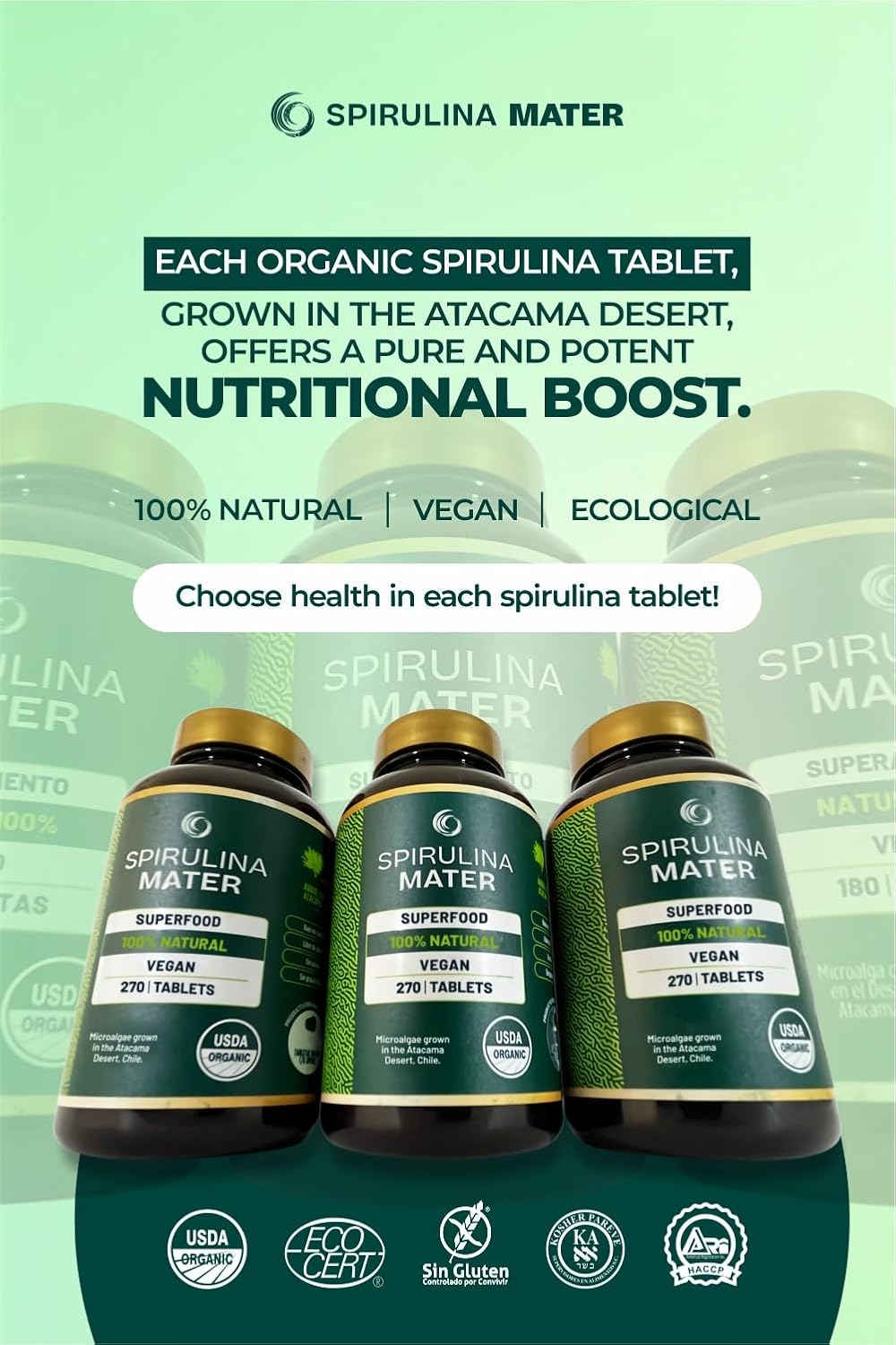 Clean, Potent & Pure: Meticulously processed to maintain its potency and purity, Spirulina Mater is an ideal choice for those seeking a high-quality, plant-based supplement free from synthetic additives and fillers