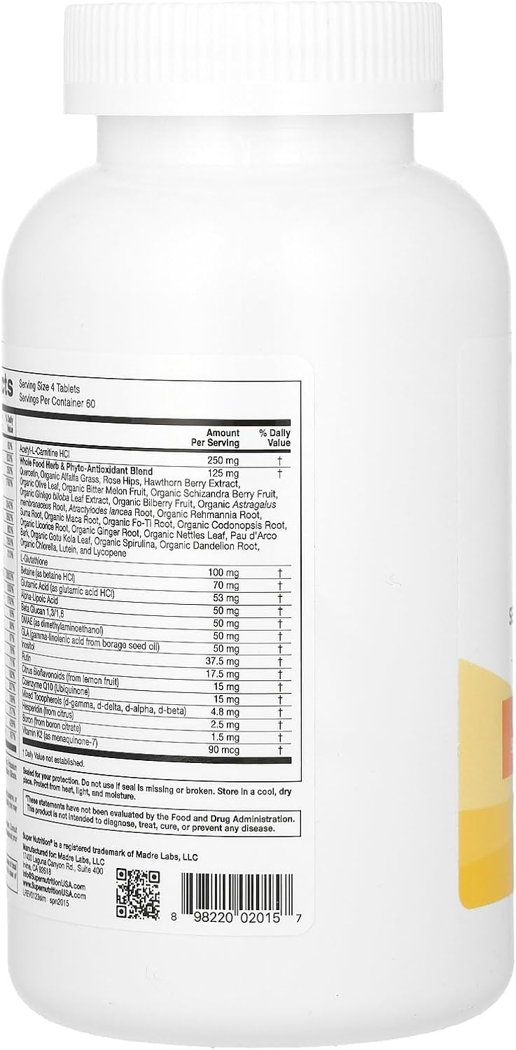Super Nutrition Super ImmuneImmune-Strengthening Multivitamin with GlutathioneA High-Potency Blend of Vitamins, Minerals, Herbs, and AntioxidantsSeasonal Wellness Multivitamin*Bone and Energy Production Support*Formulated without Gluten or GMOsScientifically Developed Dietary Supplement