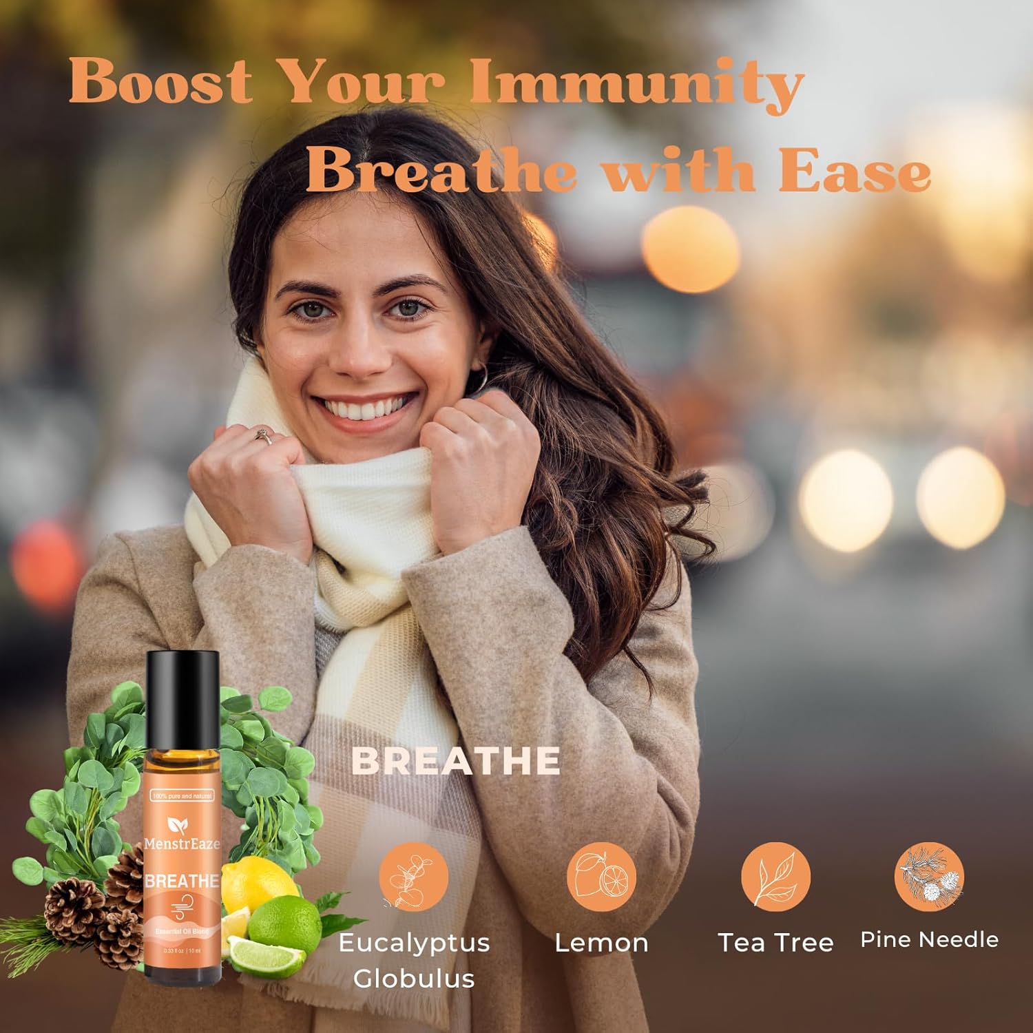 BREATHE FOR RESPIRATORY SUPPORT: Our BREATH blend features a sweet and fresh aroma, enriched with lemon, tea tree, and peppermint essential oils. Specifically formulated to support respiratory health, this blend helps relieve colds, coughs, and congestion, making it an essential part of your daily wellness routine. Use this organic essential oil set to create a soothing and breathable environment, promoting comfort and relaxation for a clearer, healthier you.