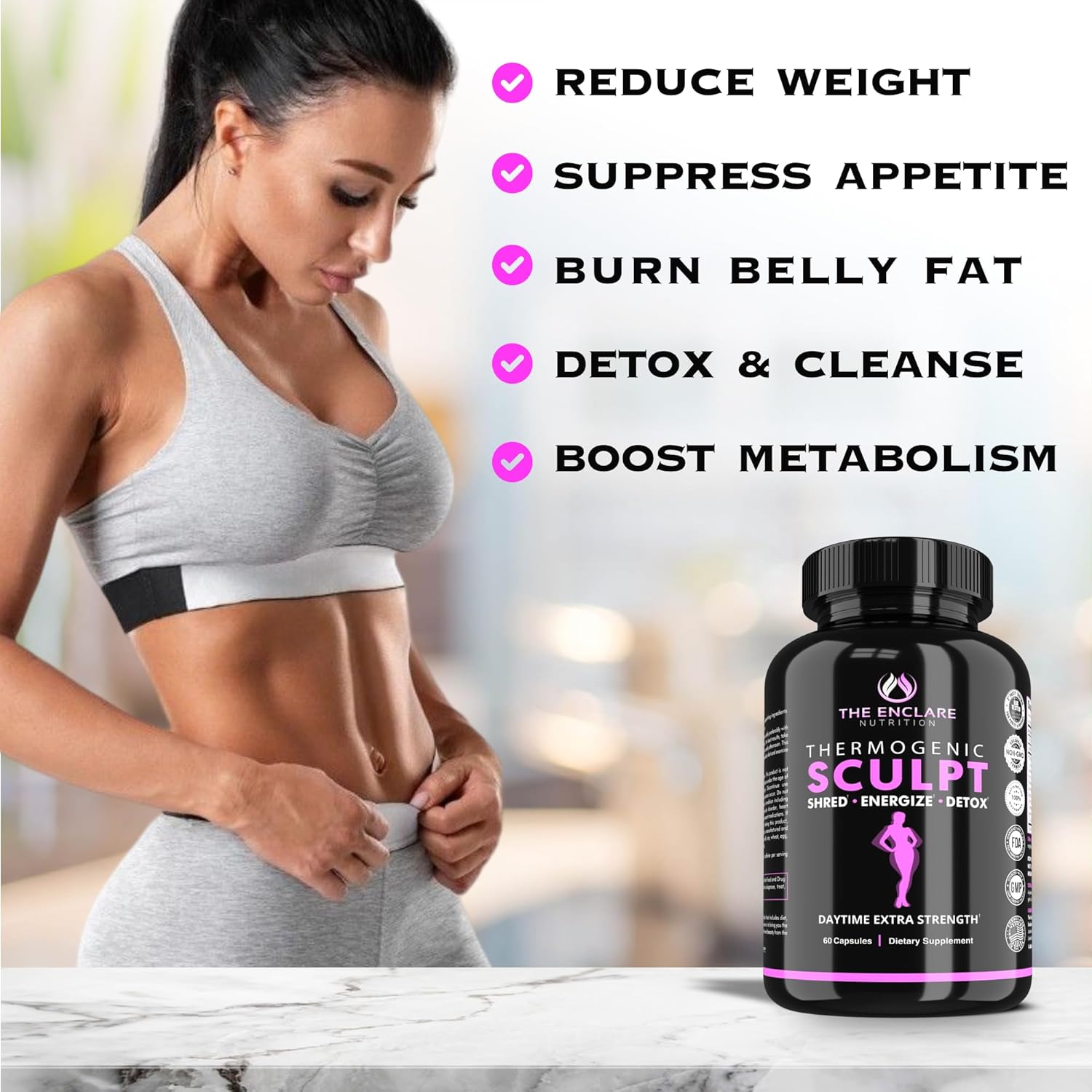 🔥 WE CARE ABOUT YOUR HEALTH AND SUCCESS: Our natural weight loss supplement for men & women is made in America following strict GMP standards and is third party tested. Sculpt weight loss support product is non-GMO, keto-friendly, & perfect for any diet. Read the safety panel before starting. Individual results may vary depending on diet, hydration, physical activity, wellness or use of medication. Not Happy? Contact Enclare directly. Take Sculpt daily and consistently for at least 90 days.