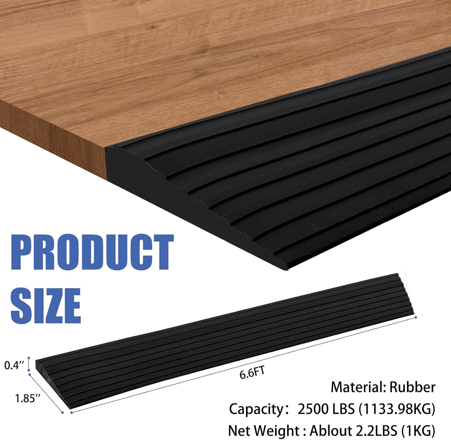 【Exceptional Load-Bearing Capacity】Engineered from highly durable rubber, this ramp handles heavy loads without deformation.With a load capacity of up to 2500 lbs, It’s the ideal solution for bridging low thresholds up to 2/5″ rise, seamlessly connecting indoor and outdoor spaces in any home.