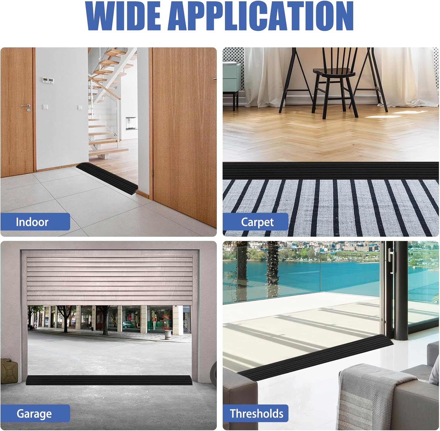 【Wide Application】our rubber threshold ramp allows wheelchairs to easily and safely navigate steps. Designed for both public and home use, it’s ideal for wheelchairs, trolleys, baby carriages, sweeping robots, bicycles, and more. Effortlessly move through doorways, thresholds, and curbs with this indispensable aid.