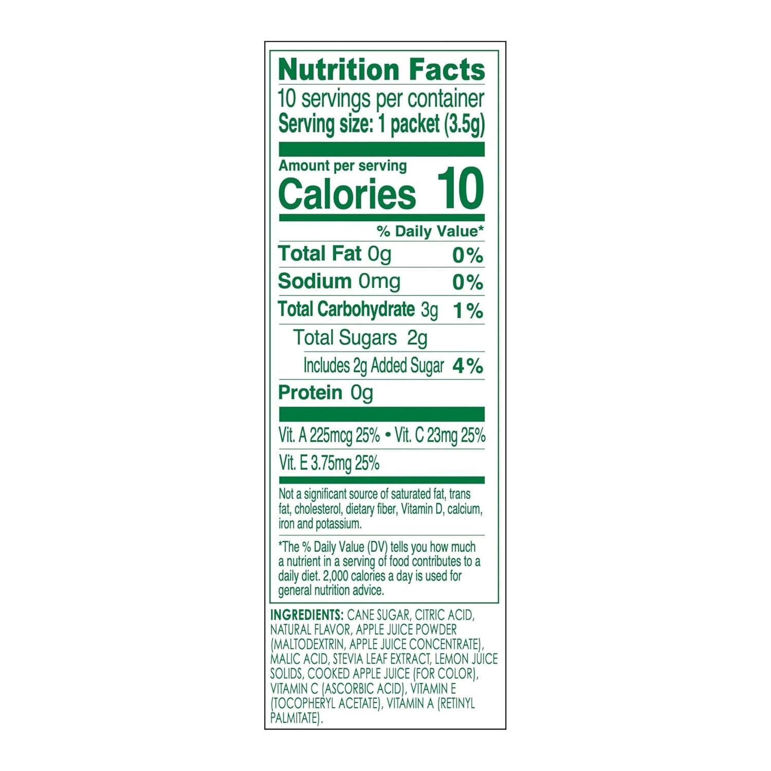 10 calories per packet