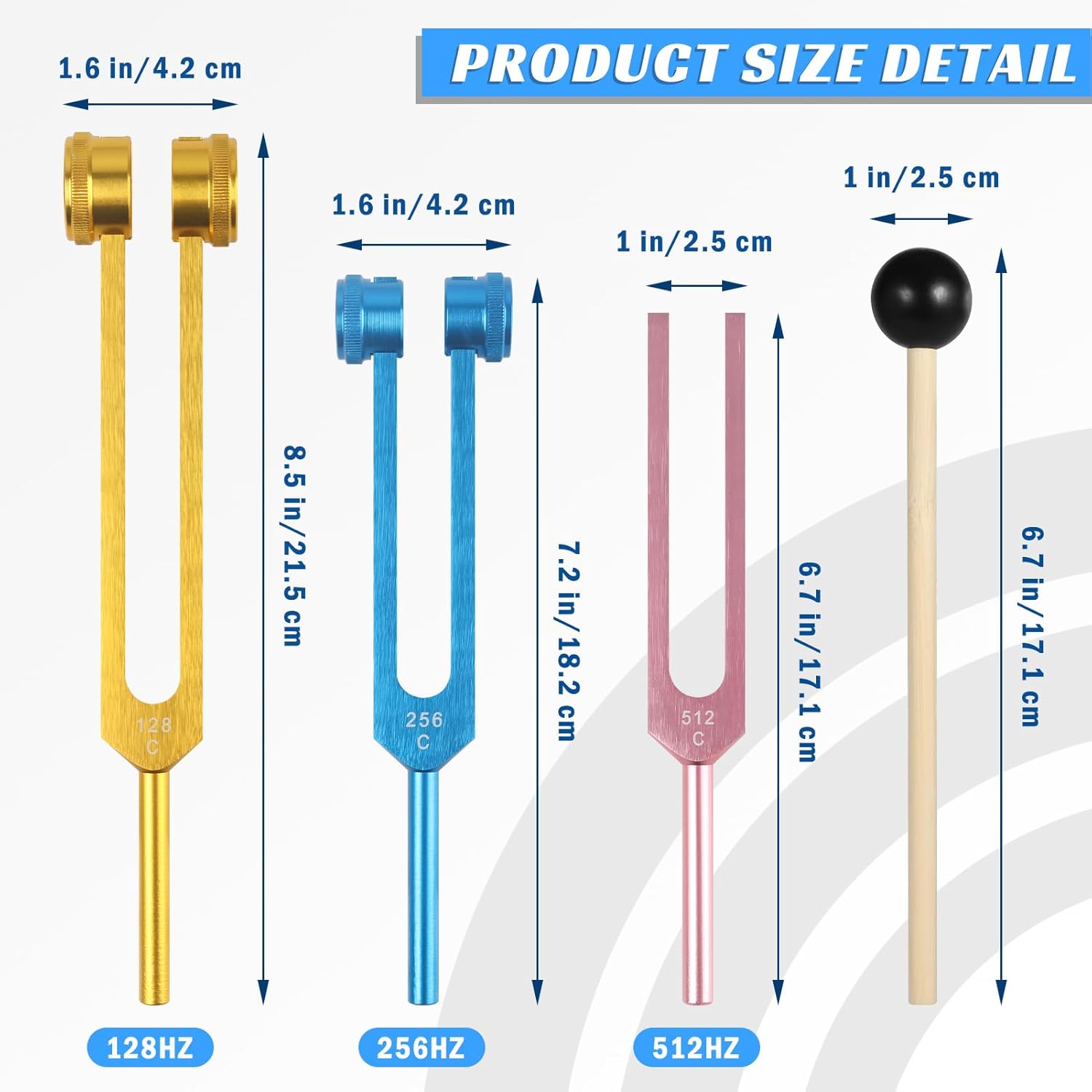 Perfect Suit: The package includes three precisely calibrated tuning forks with frequencies of 128 Hz, 256 Hz, and 512 Hz, respectively. Additionally, it comes with a convenient storage bag to keep the forks safe and organized, along with a reflex hammer.