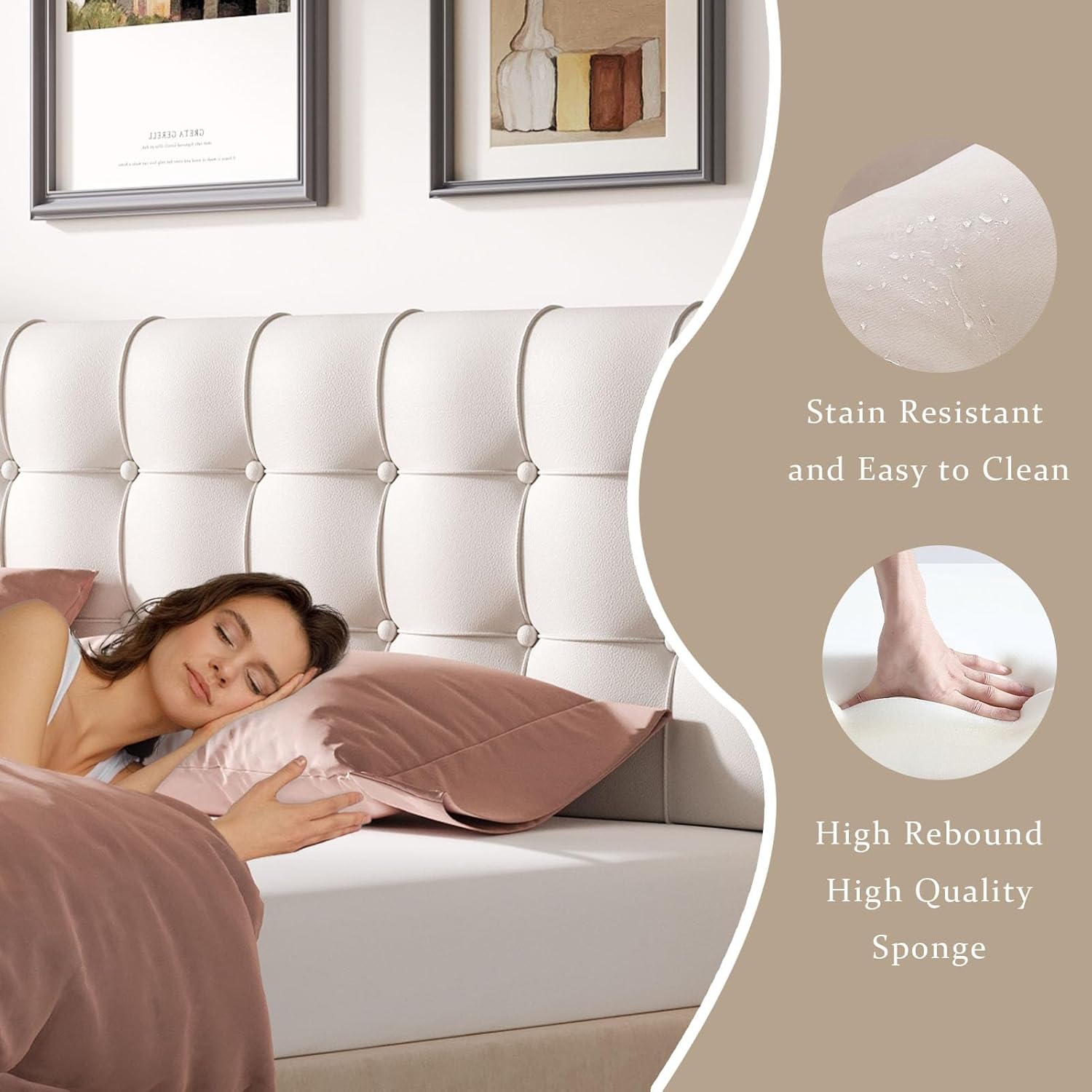 2. 【LUXURIOUS ERGONOMIC COMFORT】 Crafted with premium high-density foam (4-inch thick) wrapped in soft beige linen fabric, this upholstered headboard offers ergonomic back support for reading, relaxing, or watching TV. Quilted diamond tufting enhances durability while adding subtle texture—seamlessly complementing boho, vintage, or French country decor. The plush foam conforms to your body without sagging, delivering long-lasting comfort that outperforms thin, low-quality alternatives.