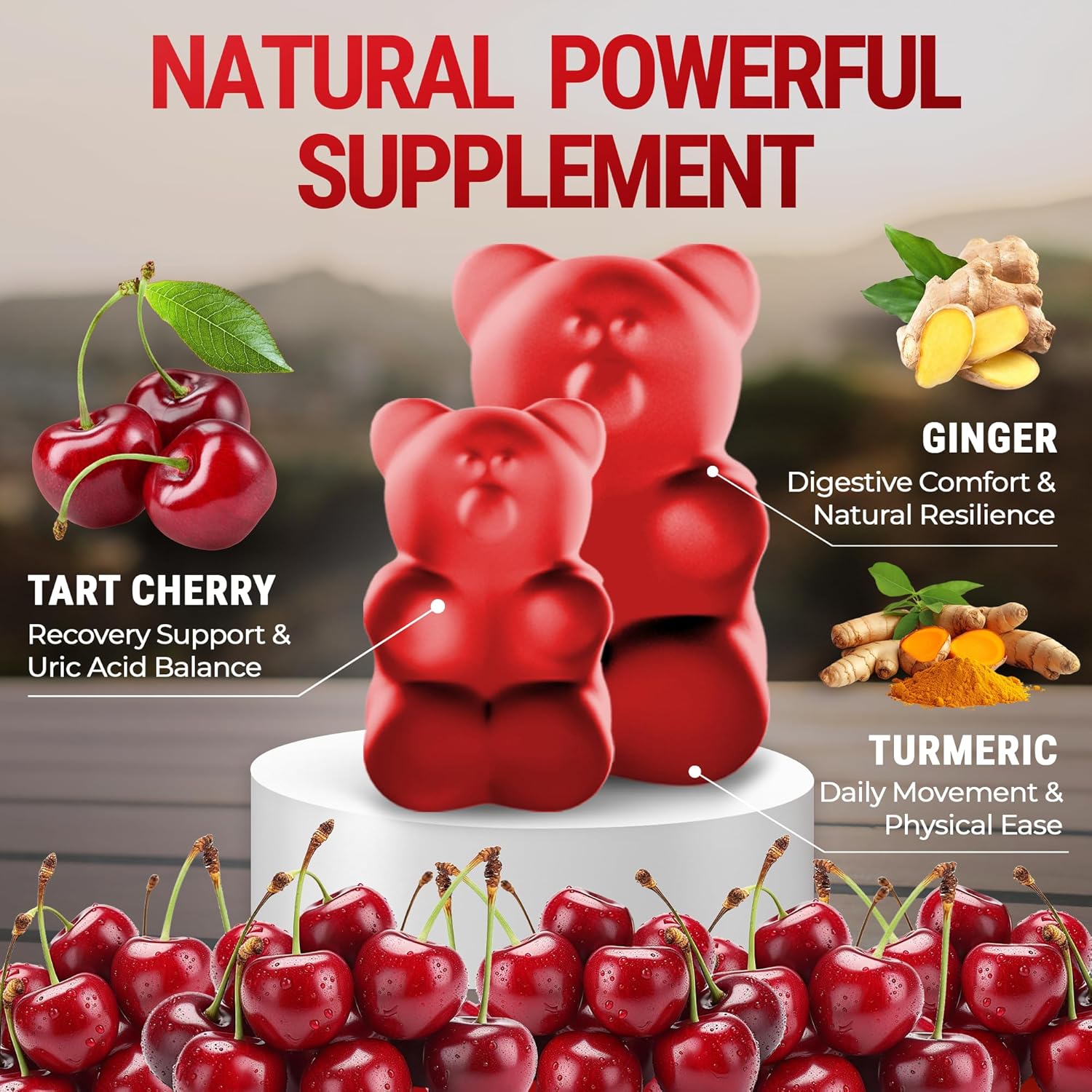 🏆URIC ACID CLEANSE: Tart cherry gummies with turmeric gummies and ginger gummies support uric acid cleanse. Tart cherry supplement helps manage uric acid levels and mobility support, while turmeric and ginger gummies support an active lifestyle and recovery.