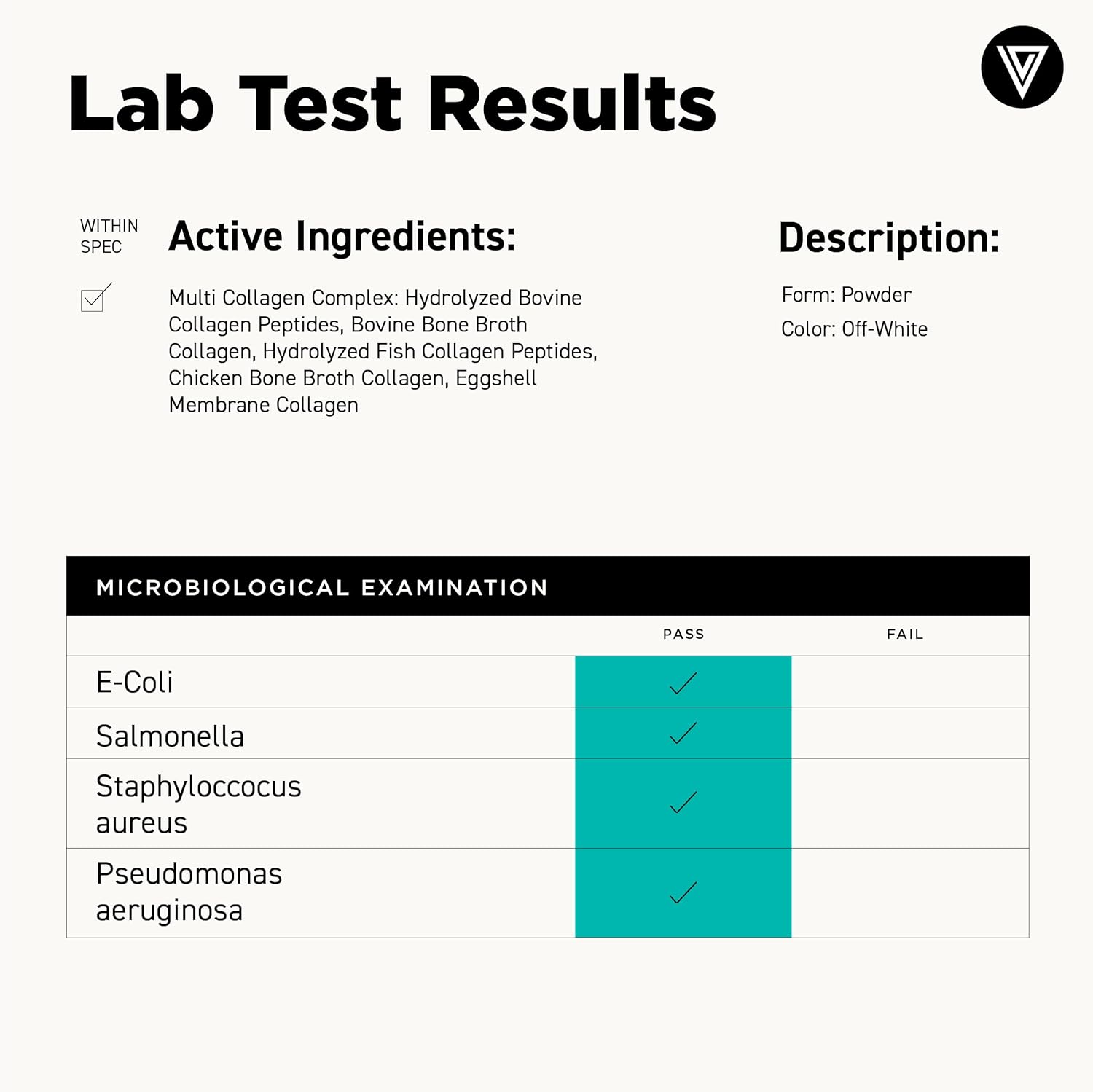 Multi Collagen Peptides Formula: Vital Vitamins Multi Collagen Powder for women and men contains a blend of type I, II, III, V, and X collagen, providing comprehensive support for hair, skin, nails, joints, and gut health.