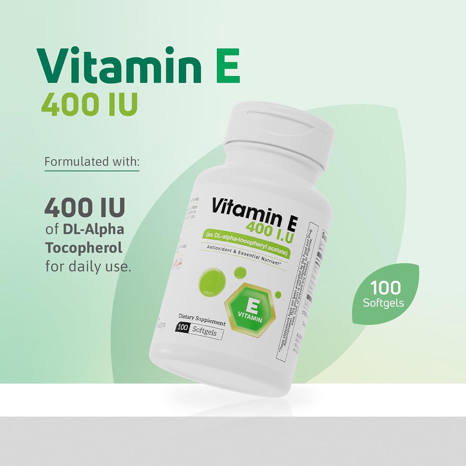 Each oil-based softgel delivers 400 IU of Vitamin E for daily antioxidant support. 100 softgels per bottle—just one a day with a meal.