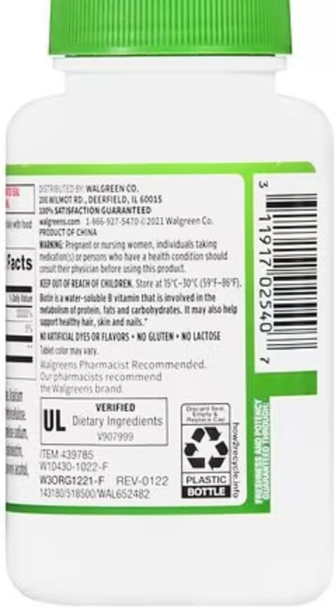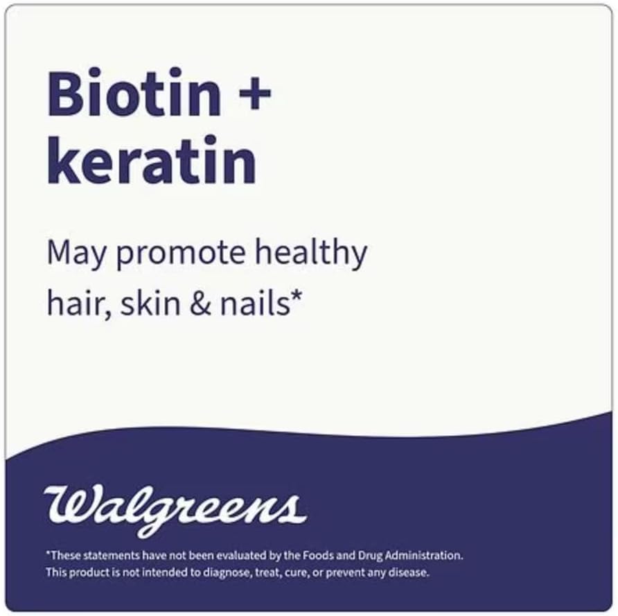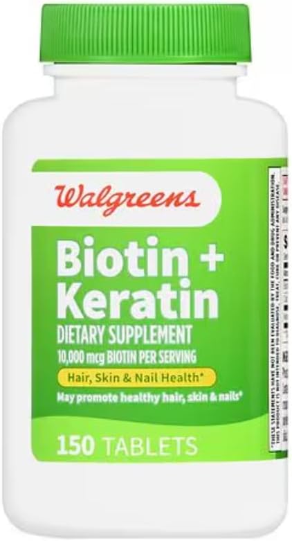 Transform your hair and nails with Walgreens Biotin + Keratin tablets, a powerhouse blend designed to elevate your beauty routine to the next level. Each tablet is packed with essential nutrients that promote stronger, healthier hair and nails from within. Biotin, known as the “beauty vitamin,” supports hair growth and helps maintain vibrant skin. Combined with keratin, a key protein that enhances hair strength and resilience, this formula delivers results you can see and feel. Say goodbye to brittle nails and hello to a radiant complexion with our easy-to-swallow tablets. Whether you’re tackling hair breakage or nurturing nails in need of some TLC, Walgreens Biotin + Keratin tablets are your go-to solution. Elevate your self-care regimen and unleash your natural beauty potential today!