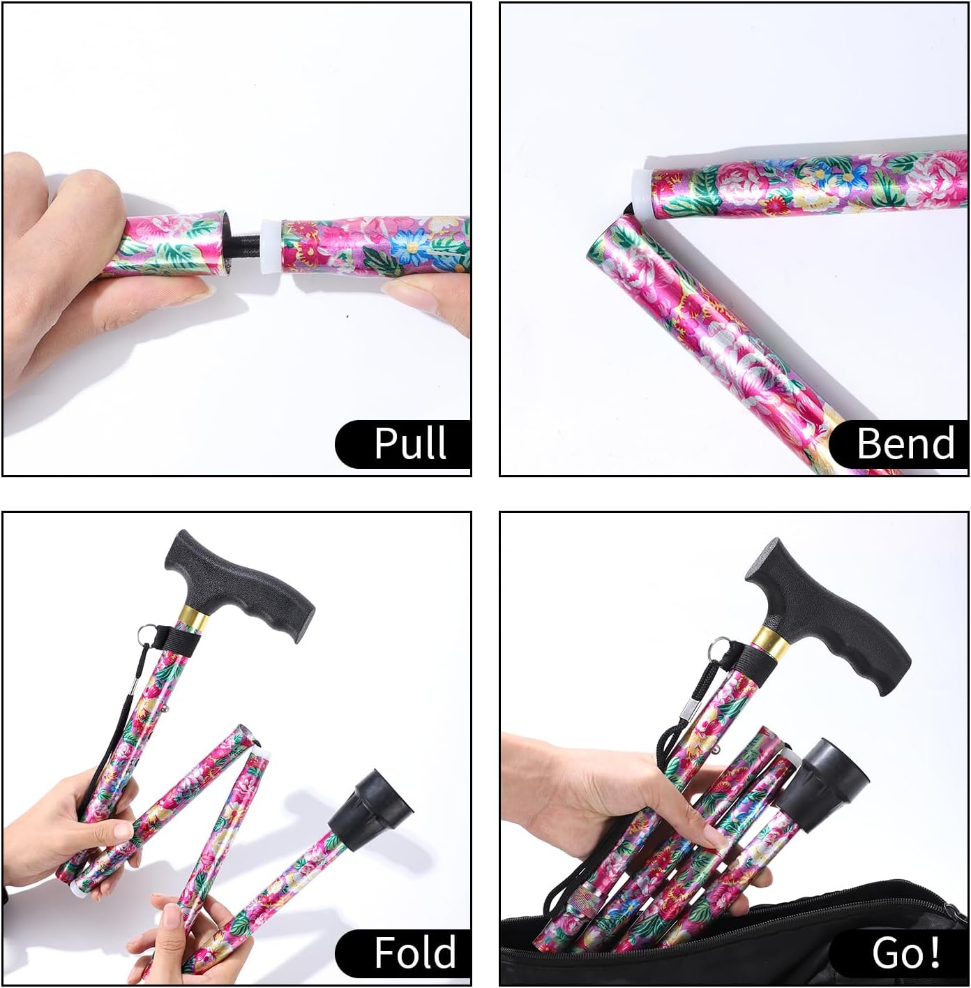 COLLAPSIBLE& COMPACT WALKING CANE – In order to provide a convenient option for those needing assistance, we develop this folding walking cane. It can smoothly and securely locks in place to provide extra stability while walking on any surface. Ergonomically-designed grip T-handle together provide users with maximum safety and comfort while exhibiting high quality and sustainability. This collapsible cane is compact, easily fitting into a purse, briefcase, carry on or wheelchair bag.