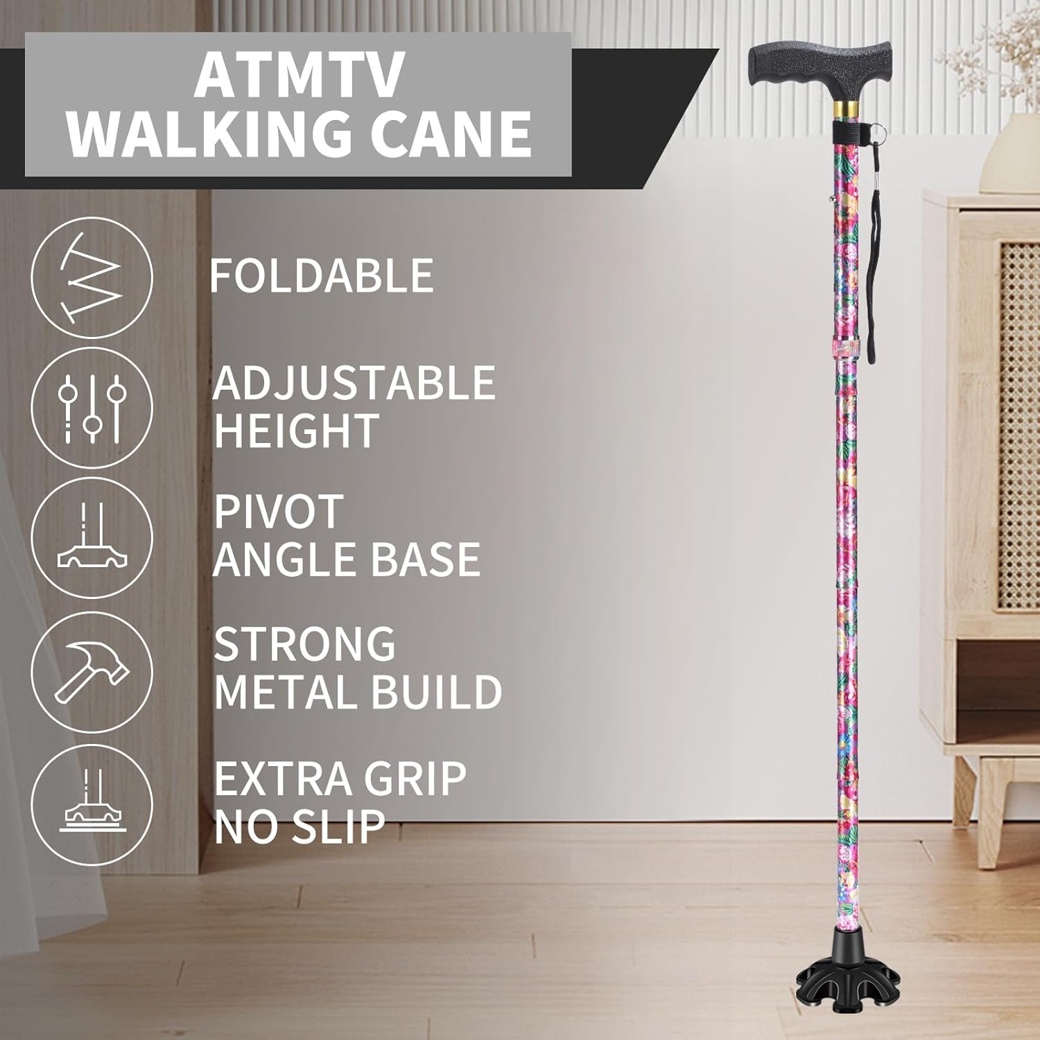 LIGHTWEIGHT & ADJUSTABLE – While remaining lightweight,this folding canes set the adjustment, 5-level height adjustable 32.5” to 36.5″. Constructed with a durable, corrosion-resistant aluminum, the folding cane is exceptionally lightweight yet sturdy. The weight of the cane is 0.75lb, while safely supporting up to 250 pounds.