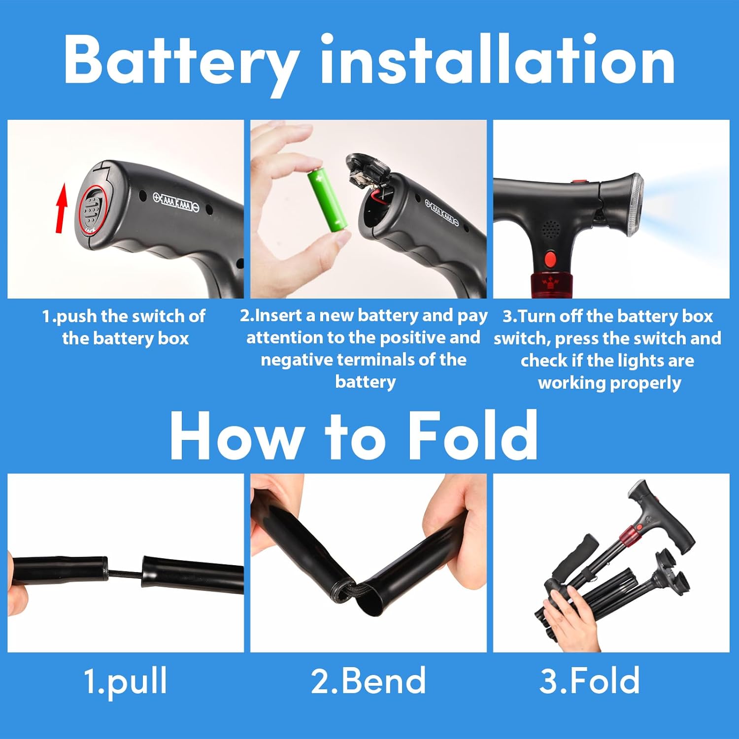 [FOLDABLE & PORTABLE]- ANCKNE walking cane has simple structure can be folded and install easily, which is convenient for you to carry it on foot or travel. It is extremely light as a result of its material, particularly suitable for people with hand problems who find it difficult to grasp heavy objects