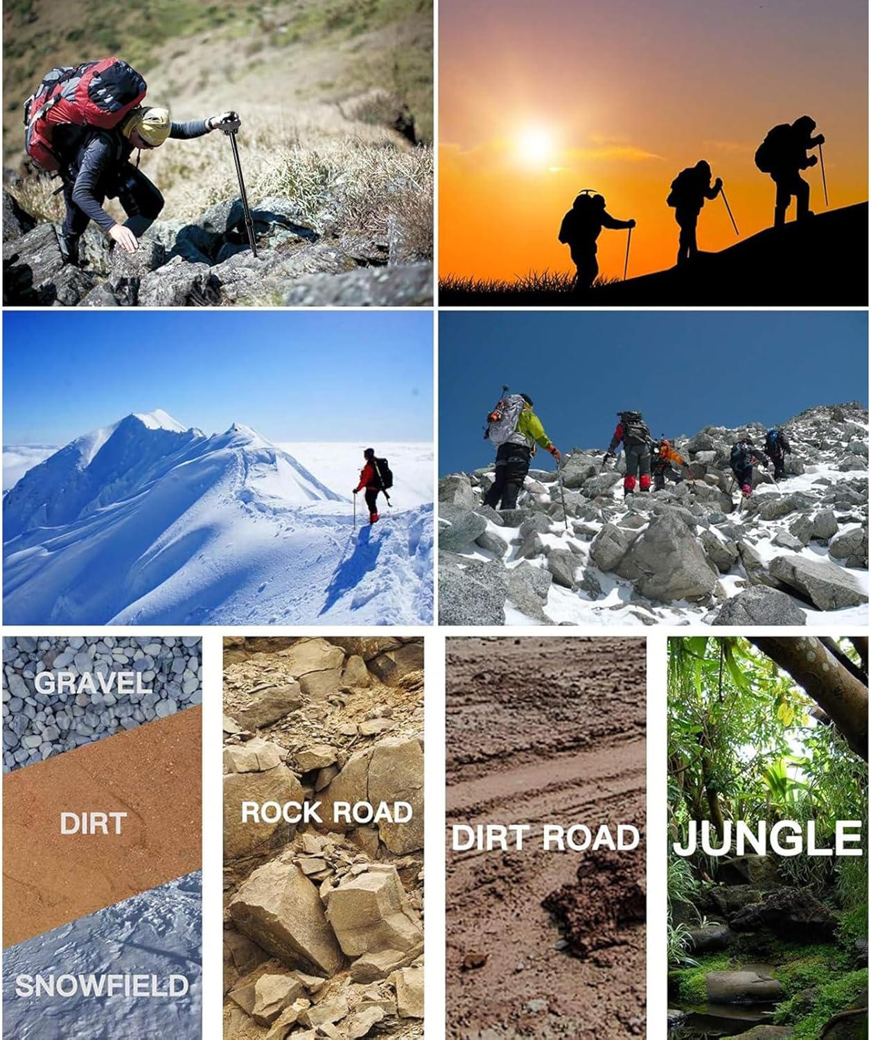 It can be used in various terrains, greatly improving the terrain of hiking trails, mountain roads, small paths, rock fields, mud paths, deep snow paths, etc., helping you save energy and prevent falls during mountaineering. Enhance the fun of mountaineering and maintain enthusiasm for outdoor activities.