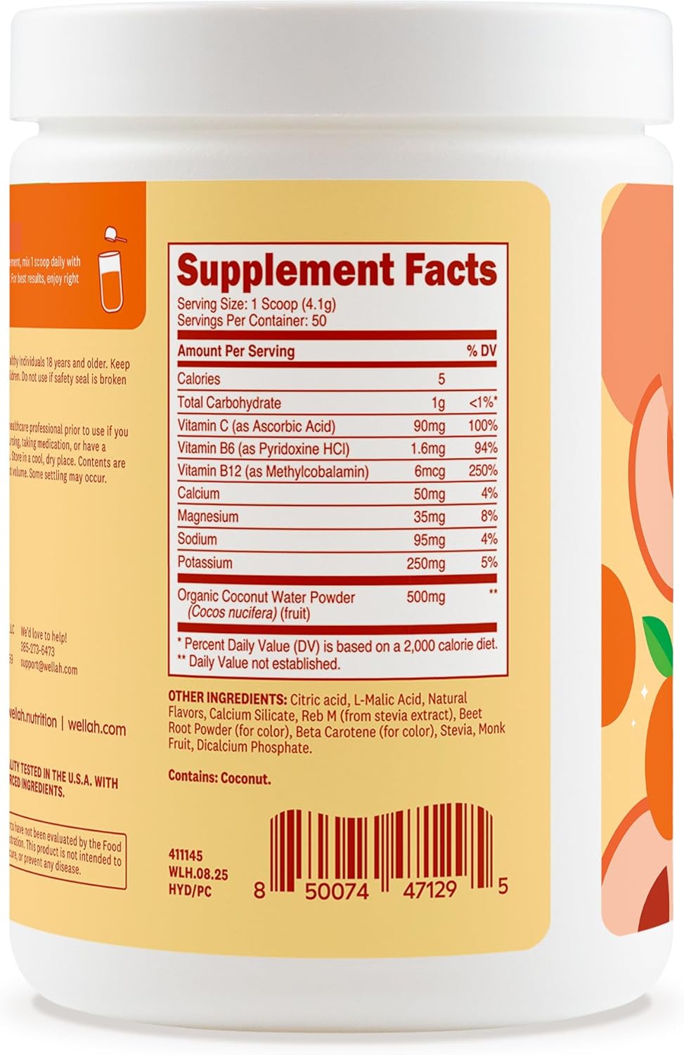 Stay hydrated and energized with Wellah Electrolytes Powder (Peach Clementine)—a refreshing way to support your body every day. Each serving combines 7 key vitamins and minerals to help restore electrolytes and promote balanced hydration. With zero sugar and a delicious peach clementine flavor, it’s the perfect drink mix for workouts, active lifestyles, or simply staying refreshed throughout the day. Mix it, sip it, and keep your wellness on track.