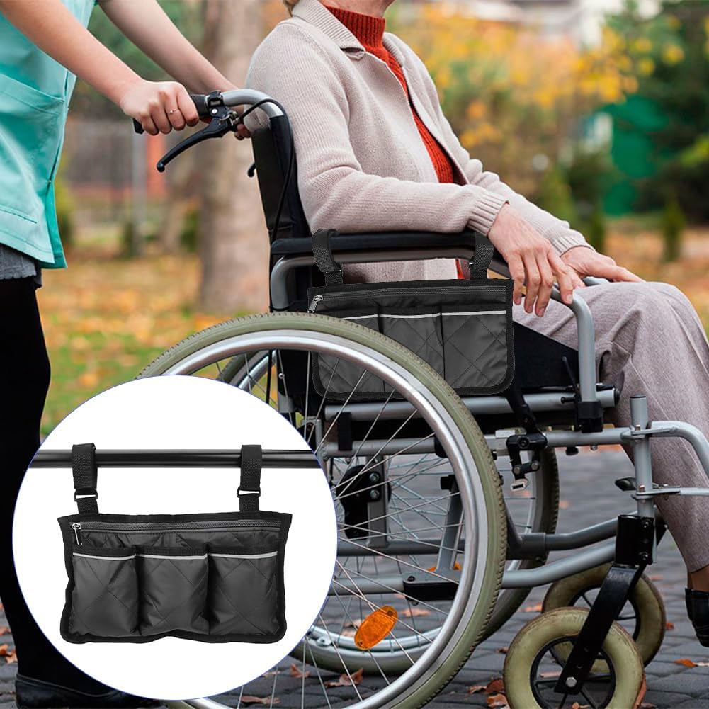 [Wide Range of Uses]: the wheelchair side bag pouch and wheelchair side bags for the armrest is versatile and can be hung on the armrest of the wheelchair, the handle of the walking chair, etc; wheelchair bag storage suitable for most wheelchairs, walking chairs and scooters, especially appreciated by the elderly at home