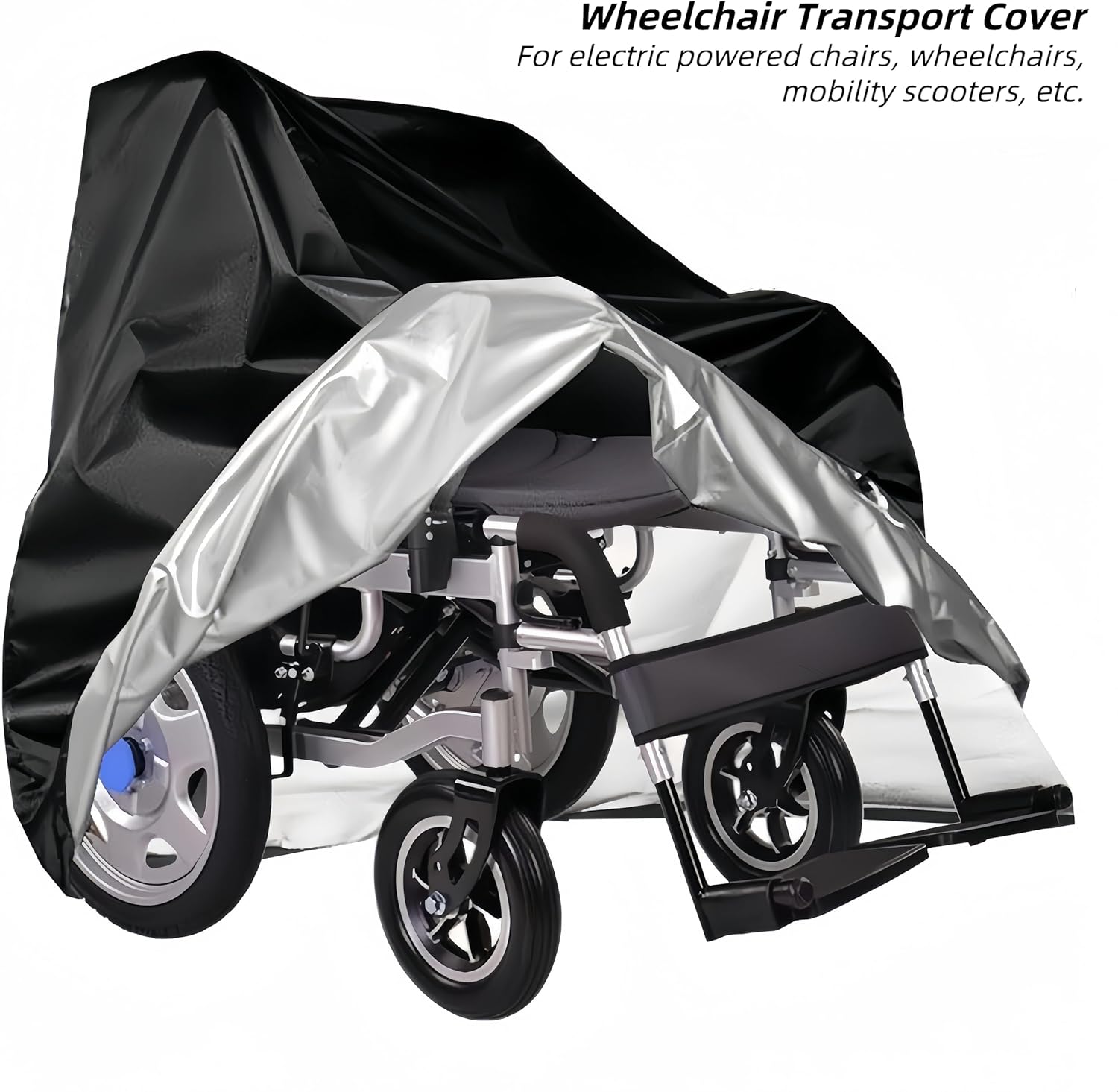 Wheelchair Transport Cover, Waterproof Electric Wheelchair Accessories Cover, Lightweight Foldable Power Wheelchair ScooterOutdoor Cover with Adjustable Snap Buckle & S-hook Straps