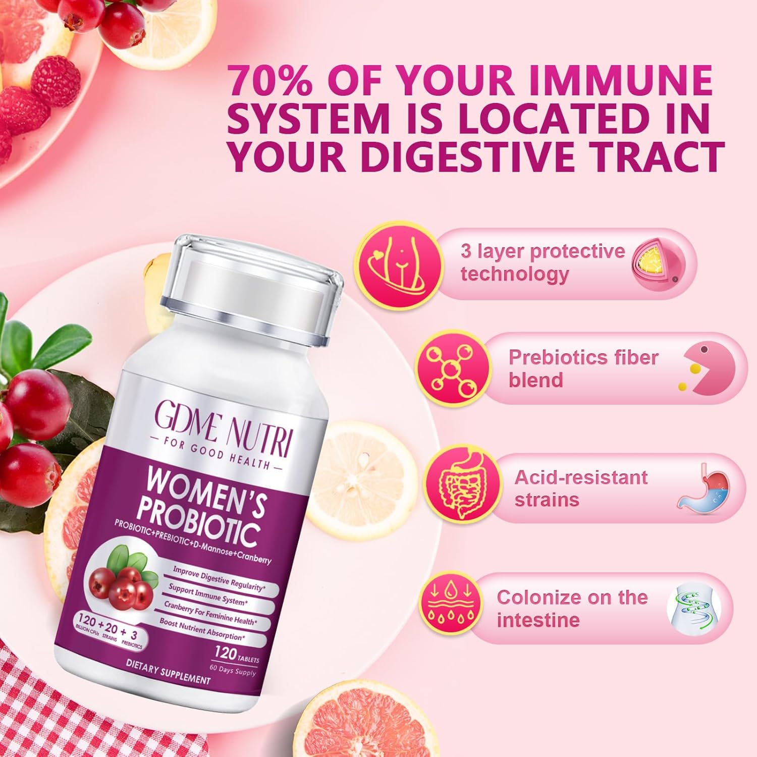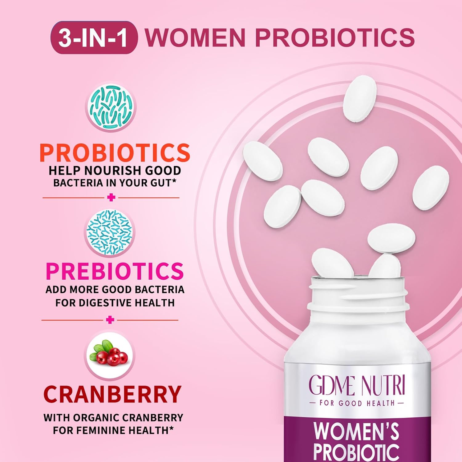 Safe & Guaranteed: GDME Probiotics are GMP certified and third-party certified, and use strict quality control measures to ensure purity and potency. Each tablet of Women’s Probiotics withstands intense stomach acid, ensuring that all strains are transported and released in the gut