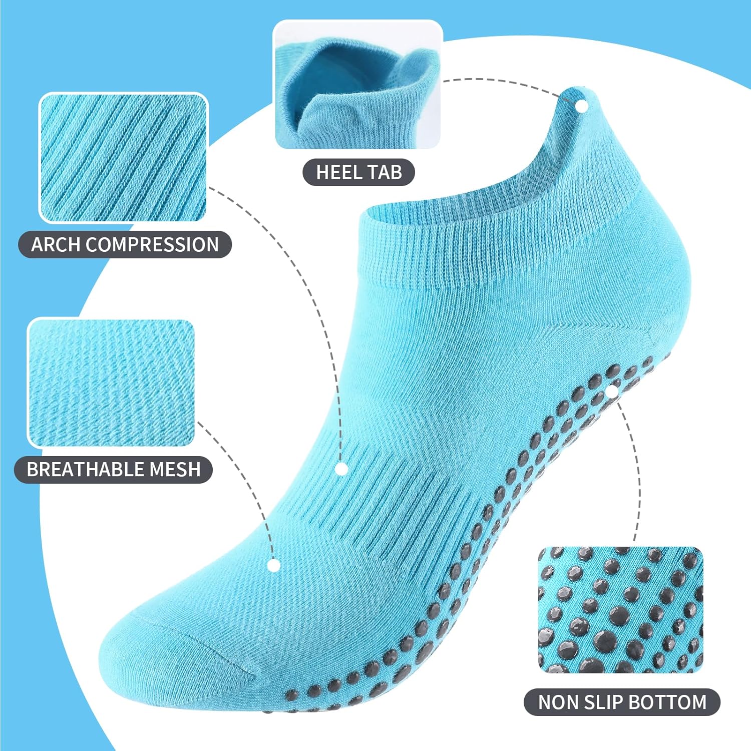 Non Slip Yoga Socks: the non slip yoga socks, made from soft cotton and polyester, feature a moisture wicking function and silicone grips; These pilates accessories for women help you maintain stability and balance, preventing slips while you focus on perfecting your pose and enhancing your practice