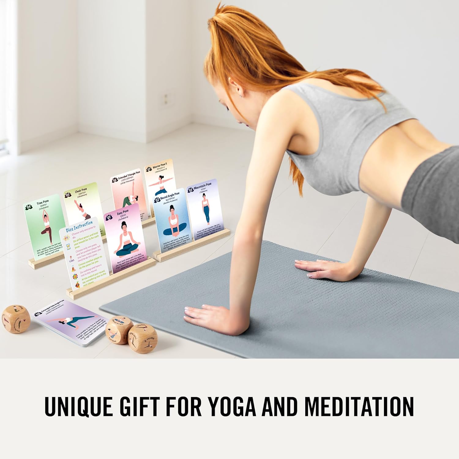 1. COMPREHENSIVE PACKAGE – The set includes 24 yoga workout cards, 8 card holder and 4 yoga posture dice. You can follow the yoga guidebook to practice poses suited for different occasions. With just a few rolls of these beautiful wooden dice, you can create unique yoga routines in seconds.