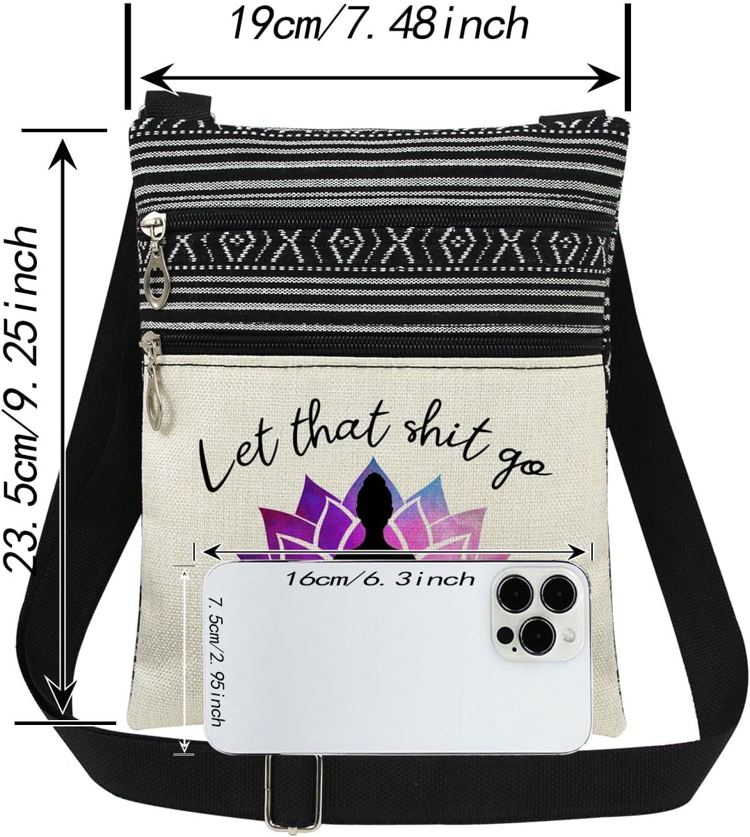 XiaoGalaee This versatile crossbody bag features a unique Yoga pattern and dual-layer compartments, offering organized storage for essentials like keys, coins, passports, cards, cosmetics, and smartphones.The adjustable strap (11.8-23.6 inches / 30-60 cm) ensures a comfortable fit for all body types, making it perfect for Daily commutes , Outdoor adventures , Holiday/birthday gifts .With its lightweight design, this bag keeps your hands free while carrying daily necessities—an ideal choice for effortless, minimalist outings.
