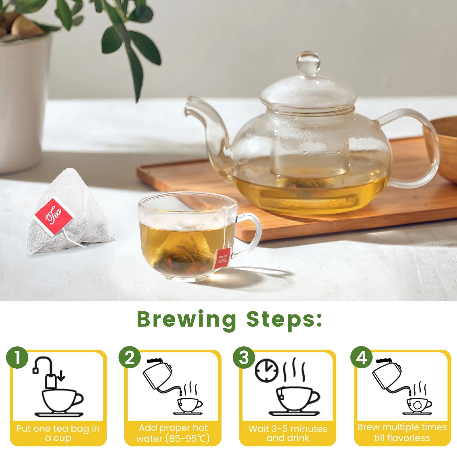HOW TO BREW DANDELION ROOT TEA BAGS : For opened but unused tea bags, store them in the refrigerator to maintain freshness. To enjoy, place one bag of organic dandelion leaf and root tea in a cup, add 8 fl oz of hot water over 90 °C, and steep for 3–5 minutes. Whether enjoyed hot in the morning or cold in the afternoon, our dandelion tea is a simple, flavorful way to prioritize daily wellness