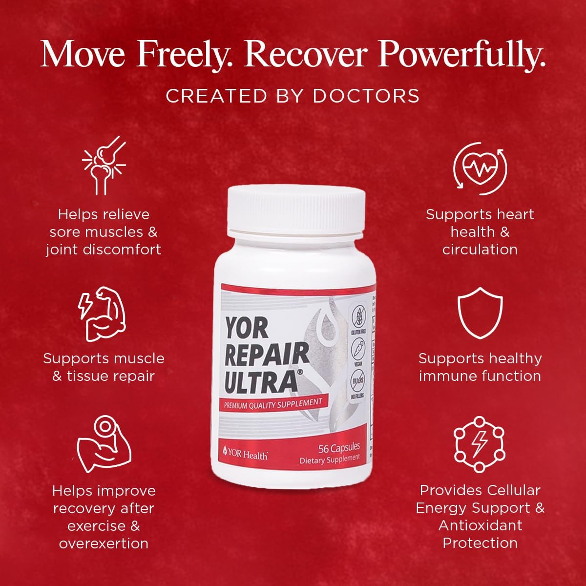 Whether you are looking to recover more quickly between training sessions, or in need of joint relief to maintain a more comfortable and active lifestyle, YOR Repair Ultra helps you bounce back faster. Our advanced enzyme blend actively works to reduce muscle & joint soreness caused by normal aging, physical strain & overexertion. By reducing discomfort, it helps keep you consistent with your workout routine, fueling an active lifestyle. By supporting your body’s natural repair process, this formula helps you get off the sidelines and back to peak performance faster than ever. This is the fuel for a lifelong journey of doing what you love.